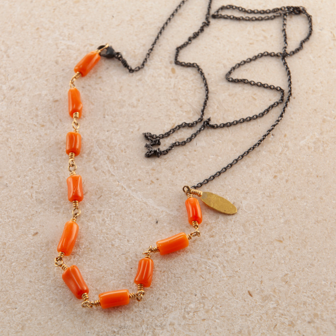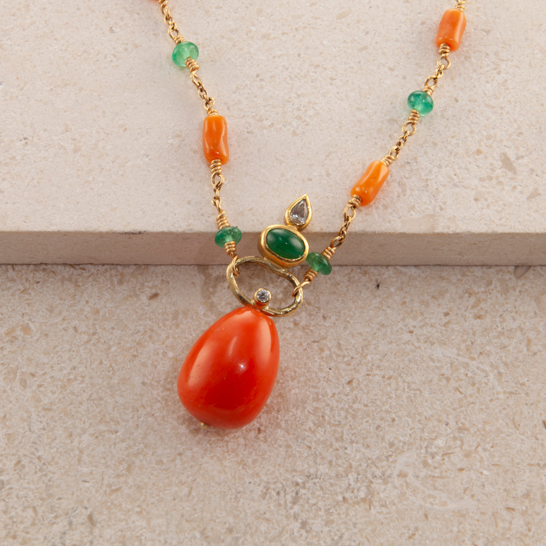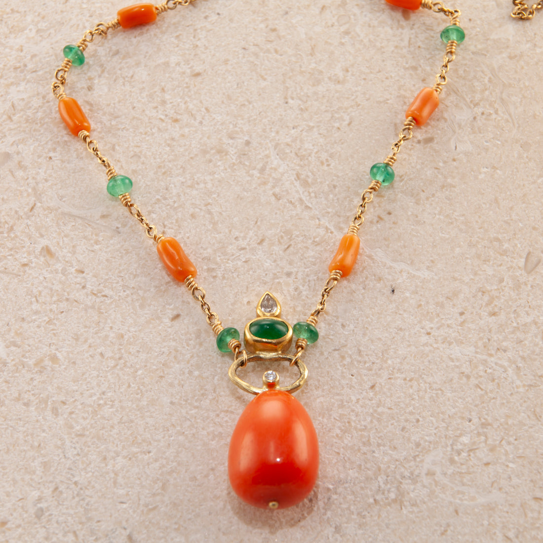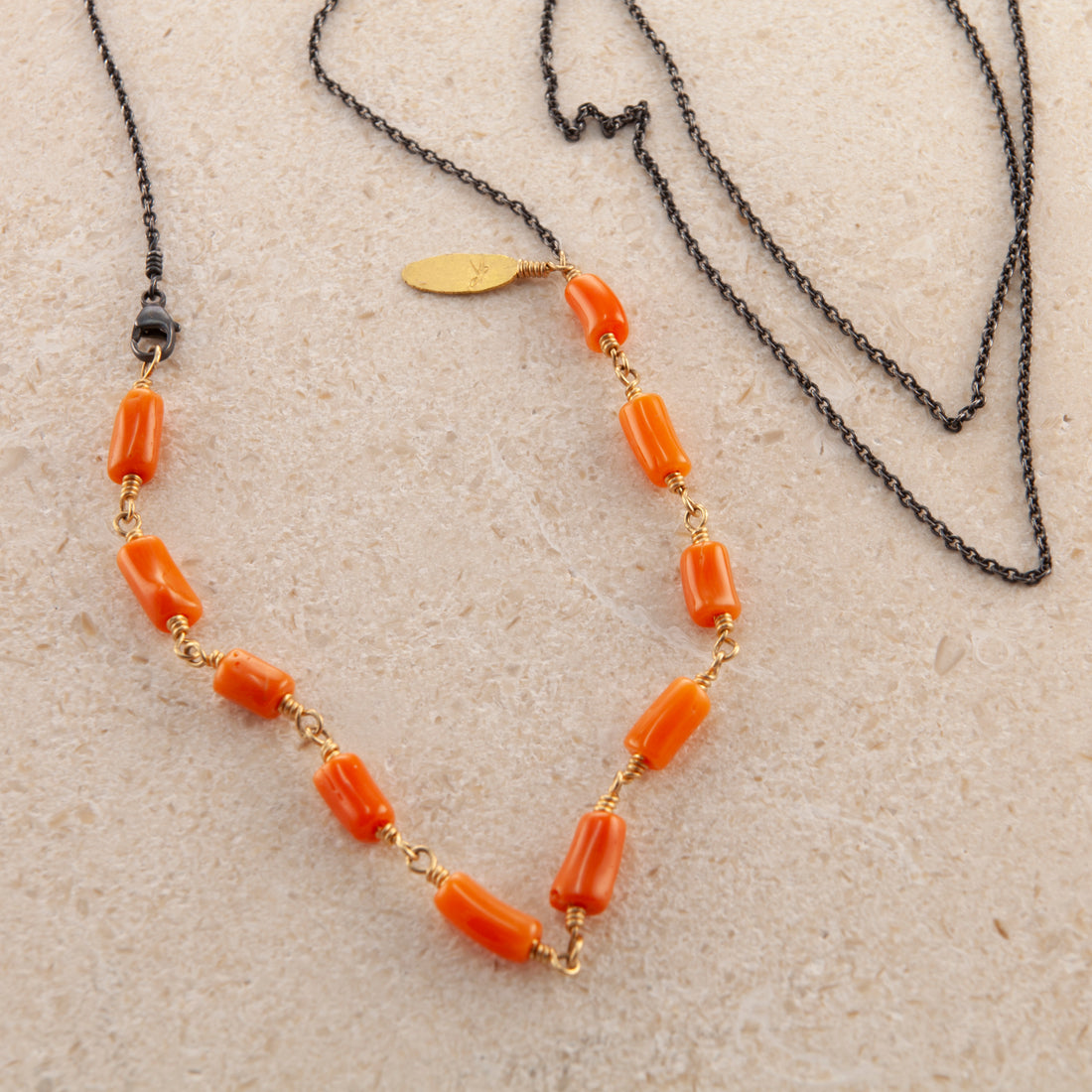 Materiale: Sølv, 18, 22 karat guld Ædelsten: Koraller Halskæden er 71 cm lang Hvis du...