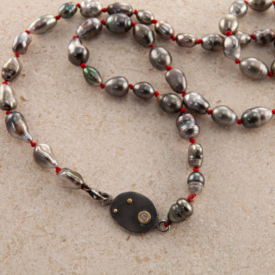 Materiale: Sølv, 18 karat guld Ædelstene: Tahiti perler, 0.04 ct. salt og peber grå brillant...