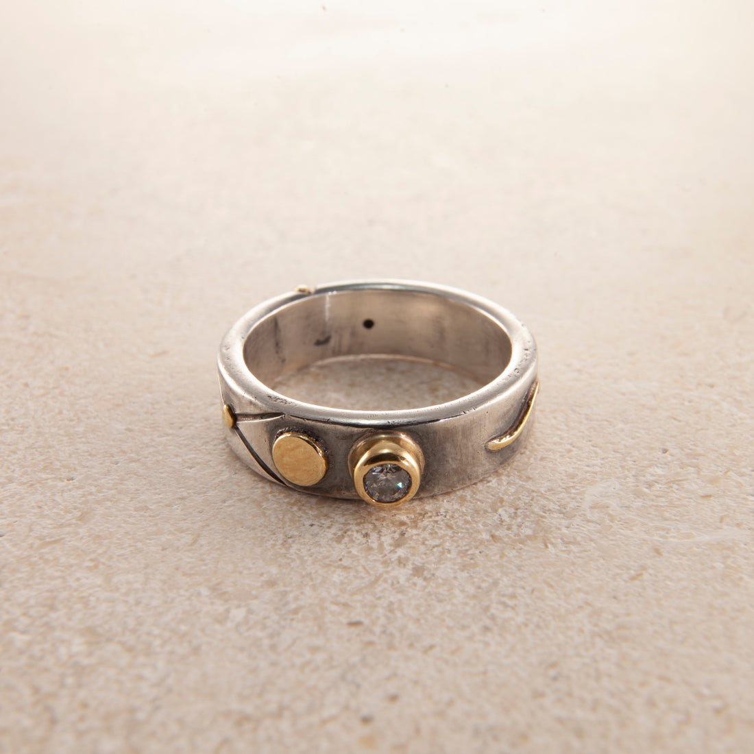 Materiale: Sølv, 18, 22 karat guld Ædelstene: 0.58 ct. rå diamant, 6 x 0.02 ct....
