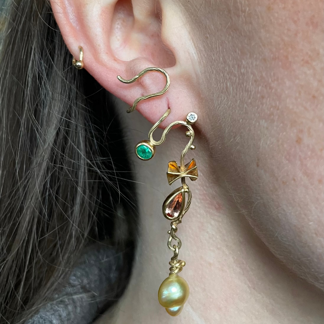 Materiale: 18, 22 karat guld Ædelstene: Keshi perle, dråbeformet imperial topas, smaragd, 0.06 ct. TW...