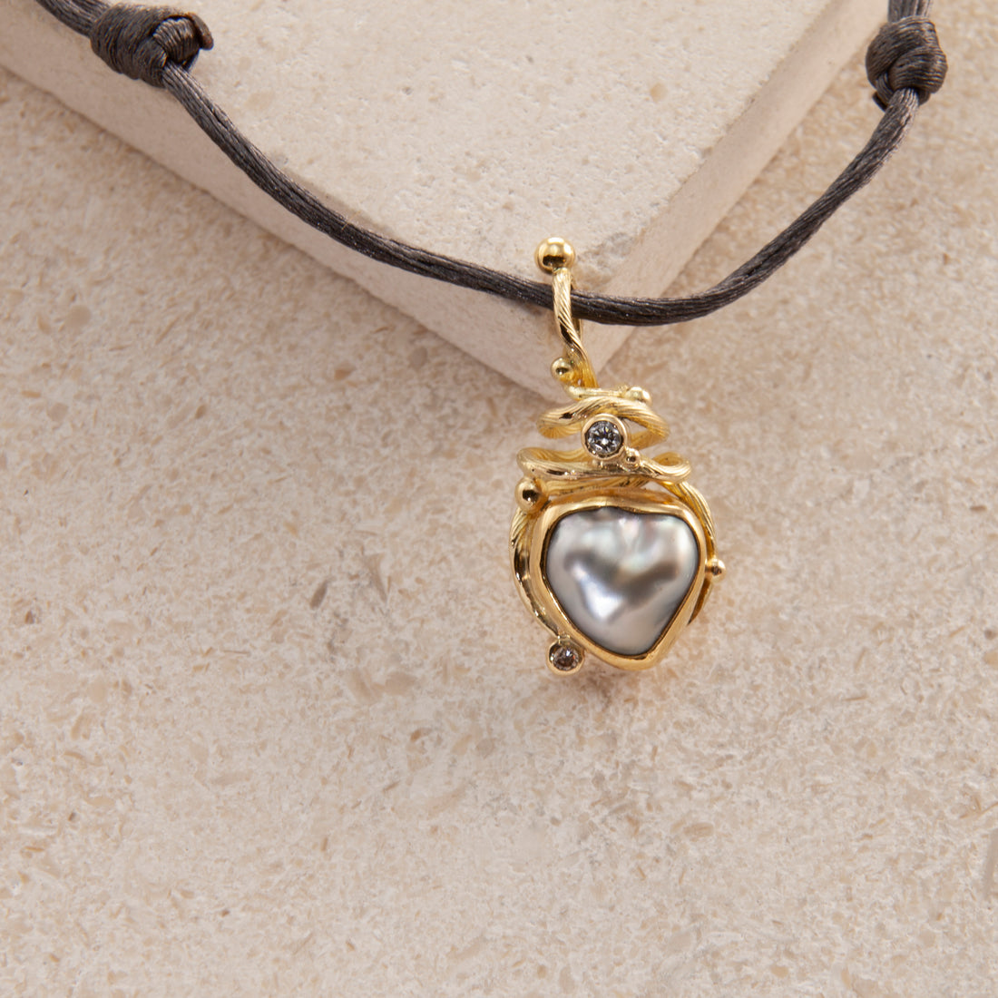 Materiale: 18, 22 karat guld Ædelsten: Tahiti keshi perle, 0.04 ct.TW vs brilliant cut Diamant,...