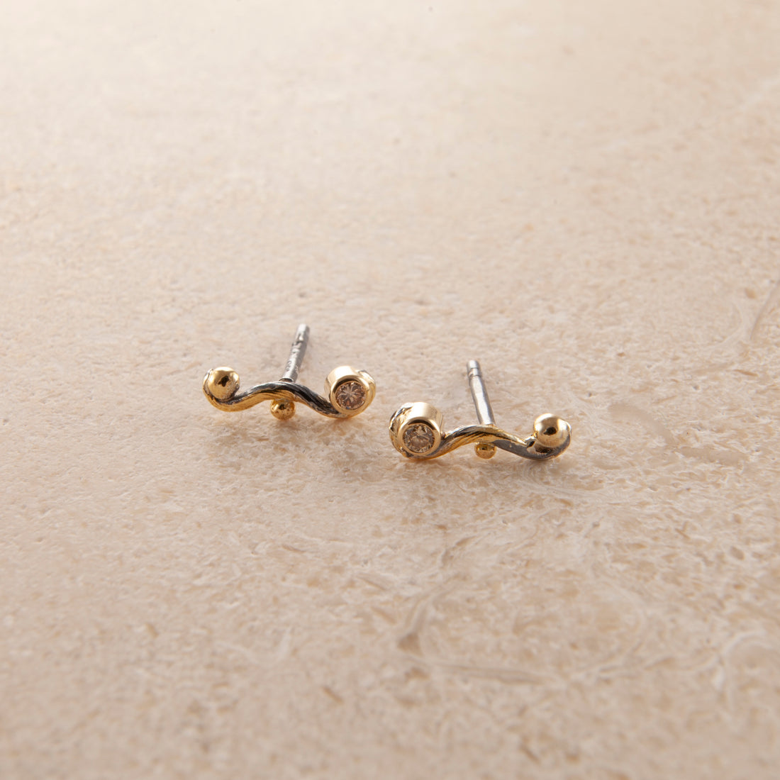 Ædelsten: 2 × 0,04 ct. champagnefarvede brillantslebne diamanter.