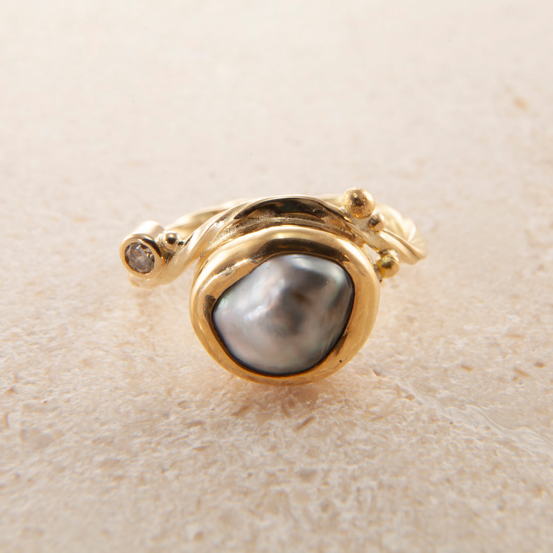 Materiale: 18 & 22 karat guld. Ædelsten: Keshi perle, 0.06 ct. Champagne brilliant cut Diamant. ...