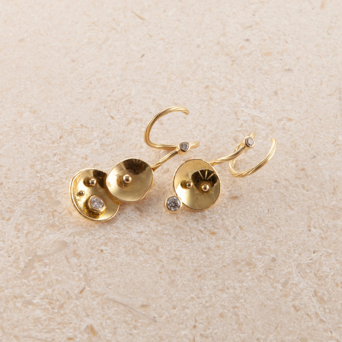 Materiale: 18 karat guld Ædelsten: 2 x keshi perler, 2 x 0.02 TW vs brilliantslebne...