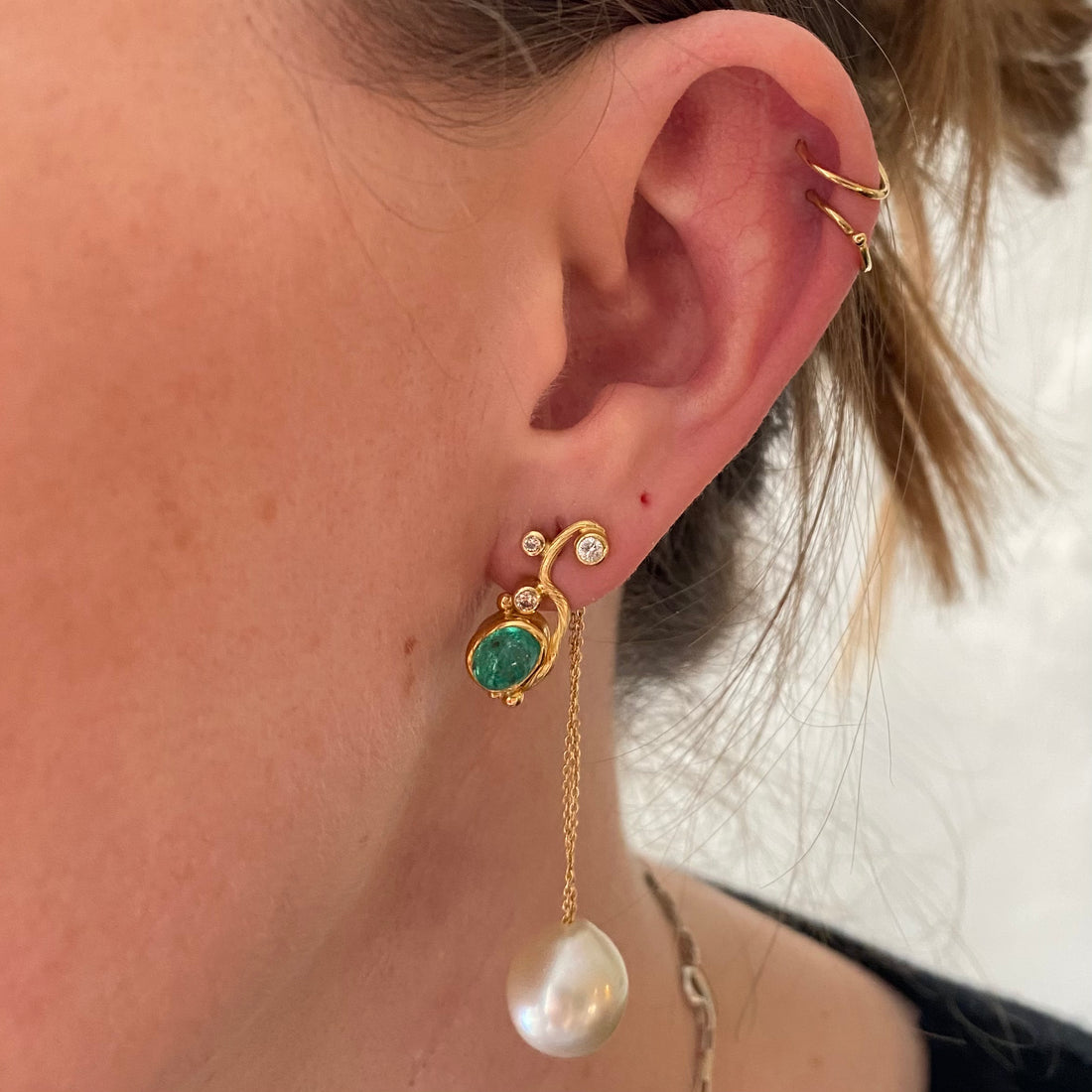 Materiale: 18 karat guld Gems: South Sea Perler Stor lås Bagstopperne kan også købes separat....