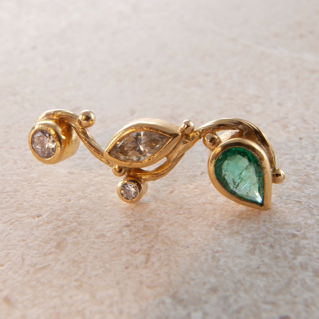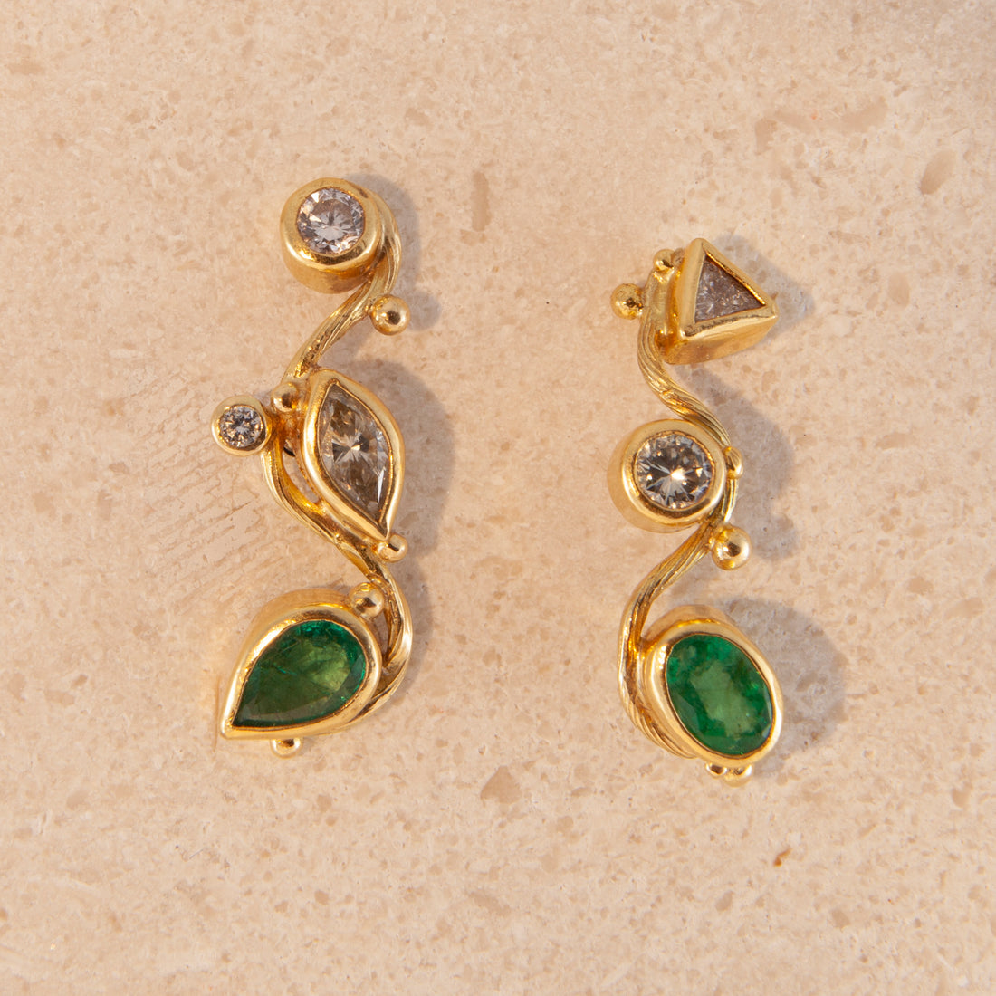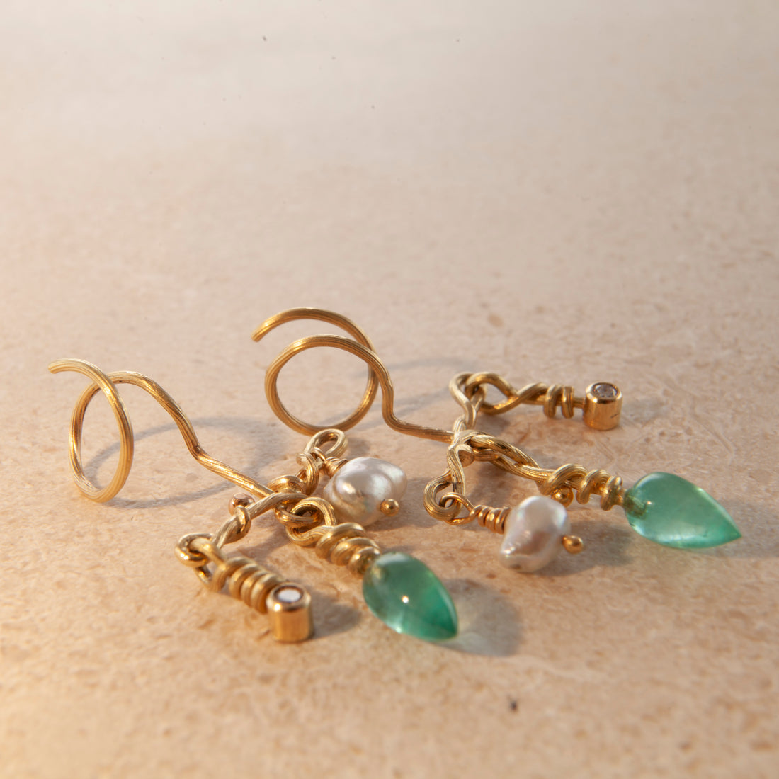 Materiale: 18, 22 karat guld Ædelsten: Smaragddråber, keshiperler, 2 x 0,04 ct. TW vs. brillantslebet...