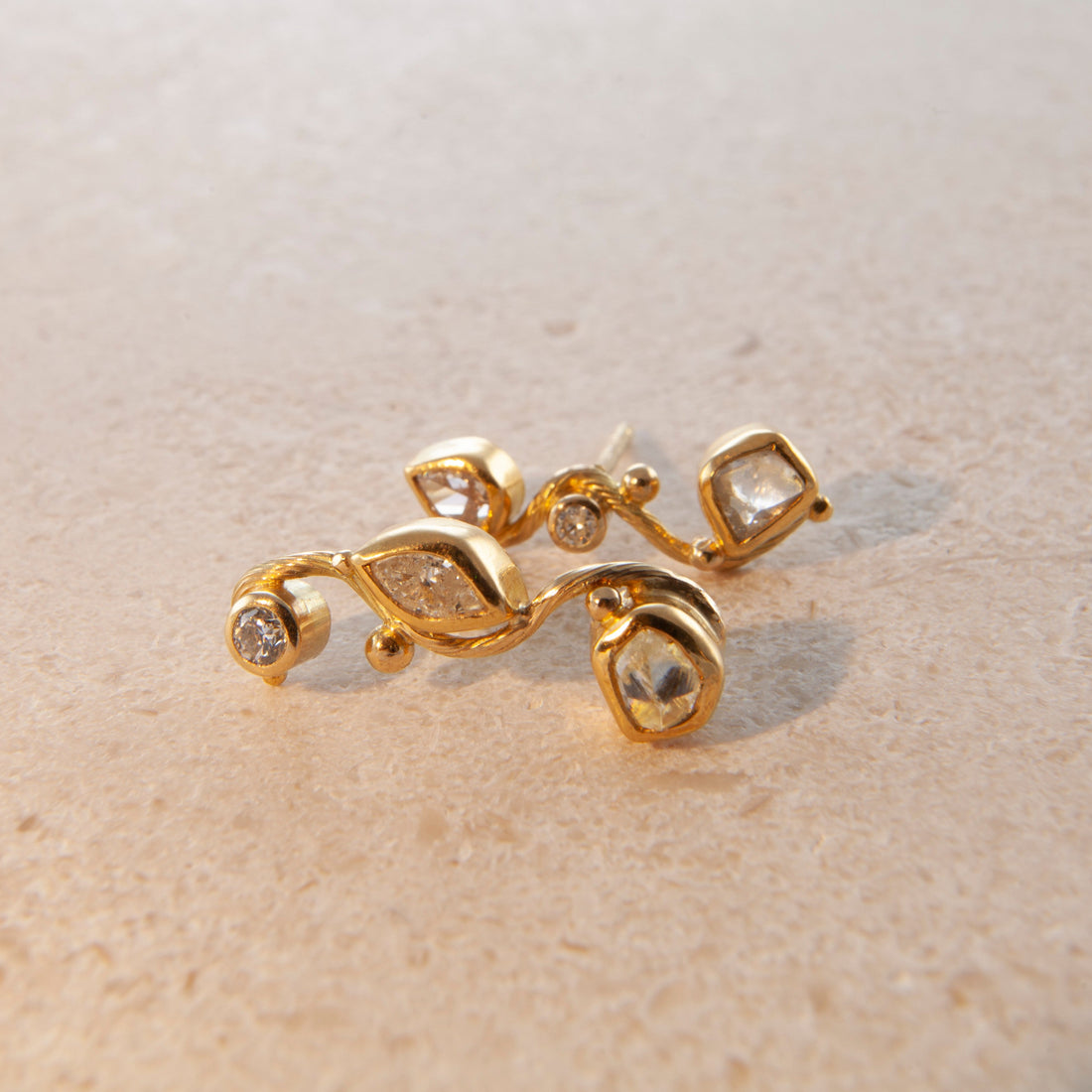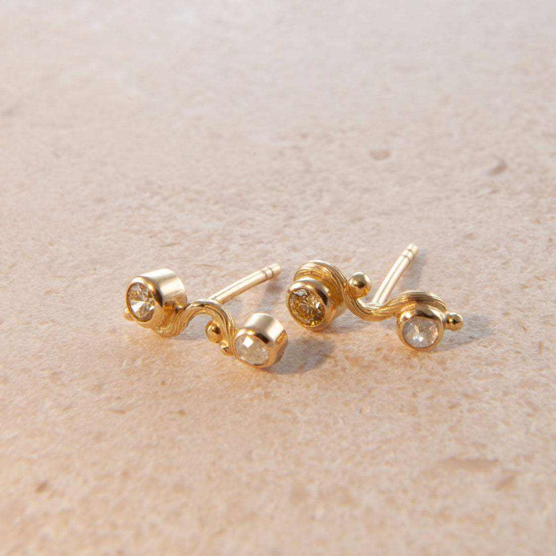Materiale: 18, 22 karat guld Størrelse: 25 mm Ædelsten: 2 x 0,02 ct., 2 x...