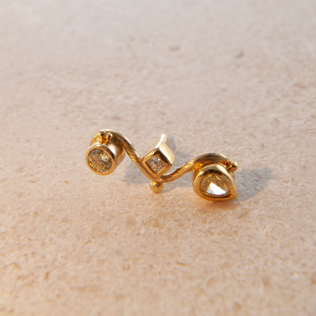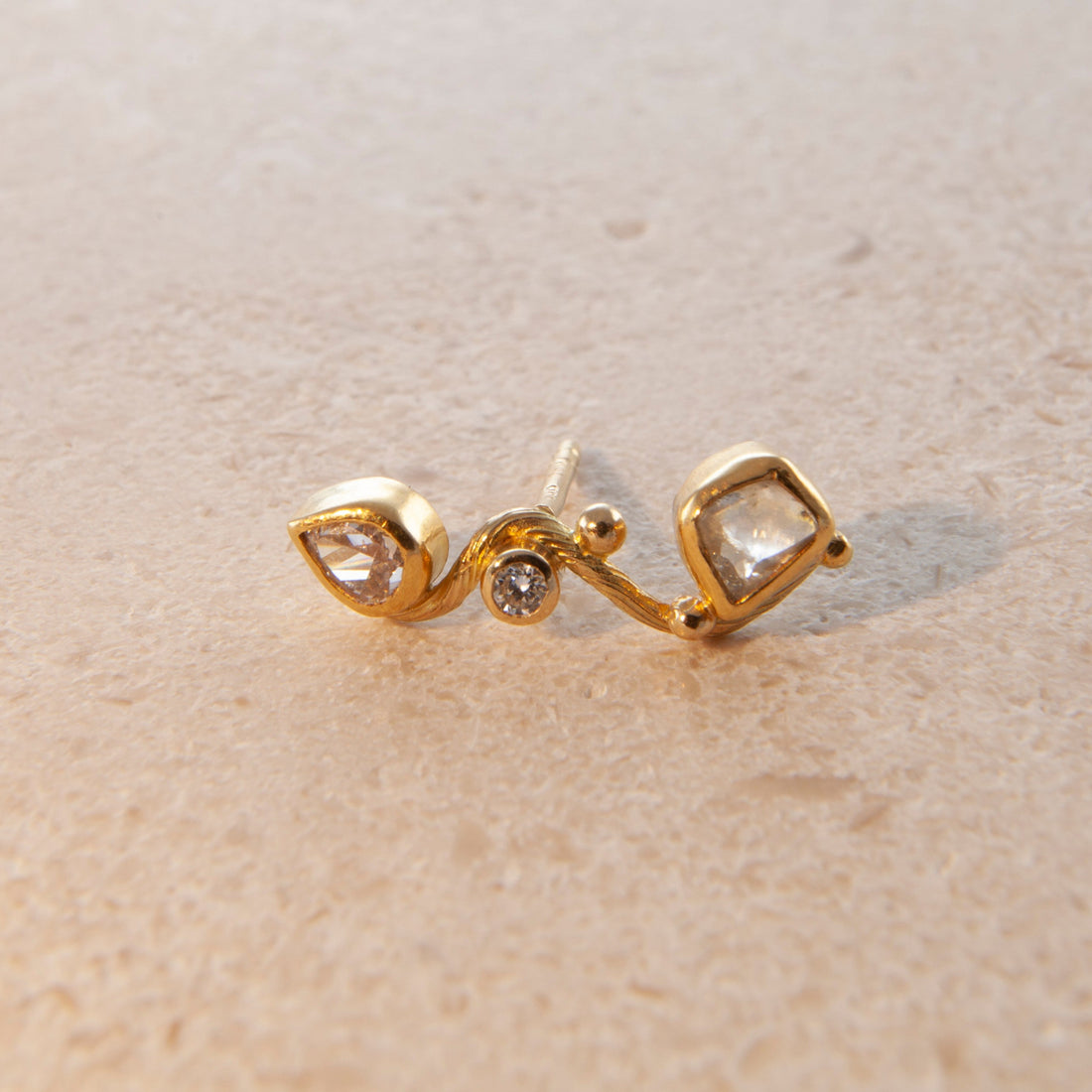 Materiale: 18, 22 karat guld Ædelsten: 0,65 ct. pæreformet diamant, 0,22 ct. pæreformet diamant, 0,15...