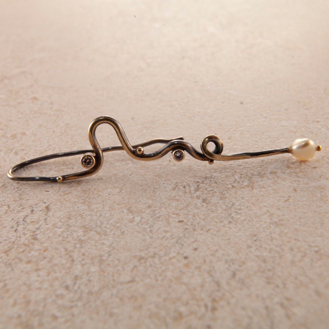 Materiale: Sølv, 18, 22, 24 karat guld Ædelsten: Keshi-perle, 0,02 ct. TW vvs brillantslebet diamant,...