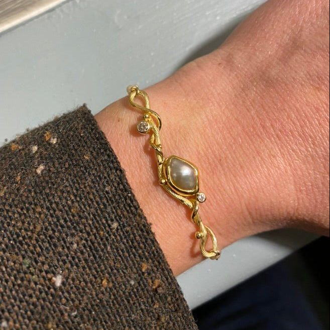 Materiale: 18, 22k guld Ædelsten: 0.08 ct. champagne brilliant cut Diamant, keshi Perler. Armbåndets længde...