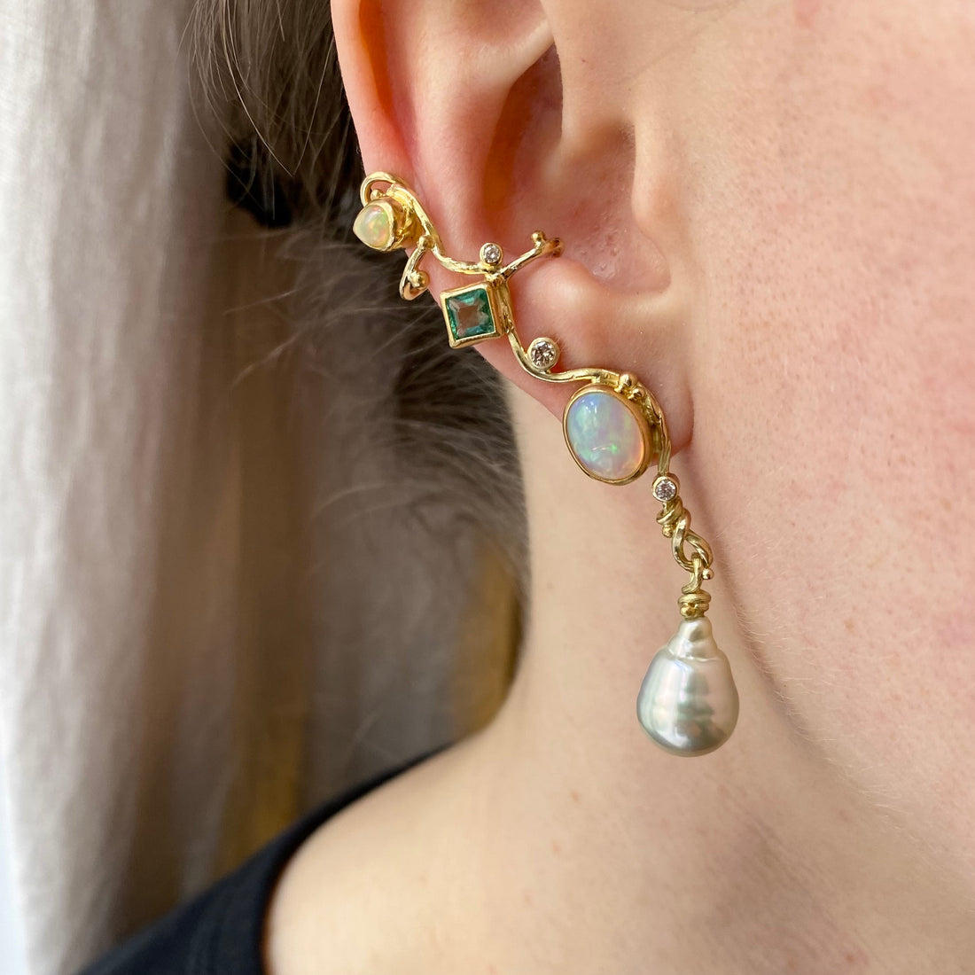 Materiale: 18, 22 karat guld Ædelstene: South sea perle, keshi perle, smaragd, dråbeformet safir, 0.12 ct....