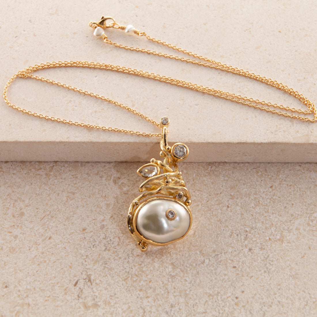 Materiale: 18, 22 karat guld Ædelsten: Gylden South Sea pearl, 0.02 champagne brilliant cut Diamant, 0.04 TW...