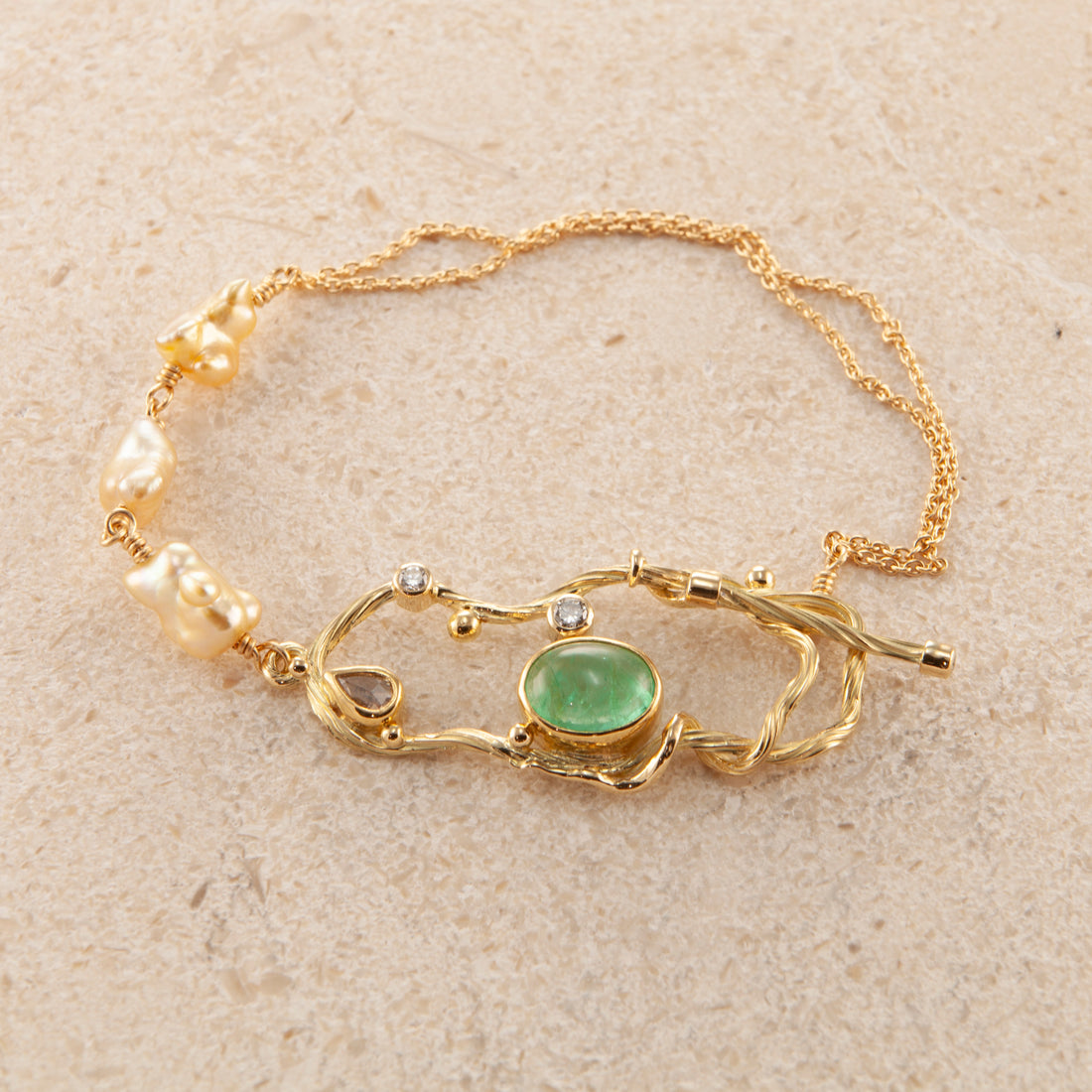 Materiale: 18, 22 karat guld Ædelsten: 1.70 ct. Smaragd, 0.07 ct. antik cut dråbeformet Diamant,...