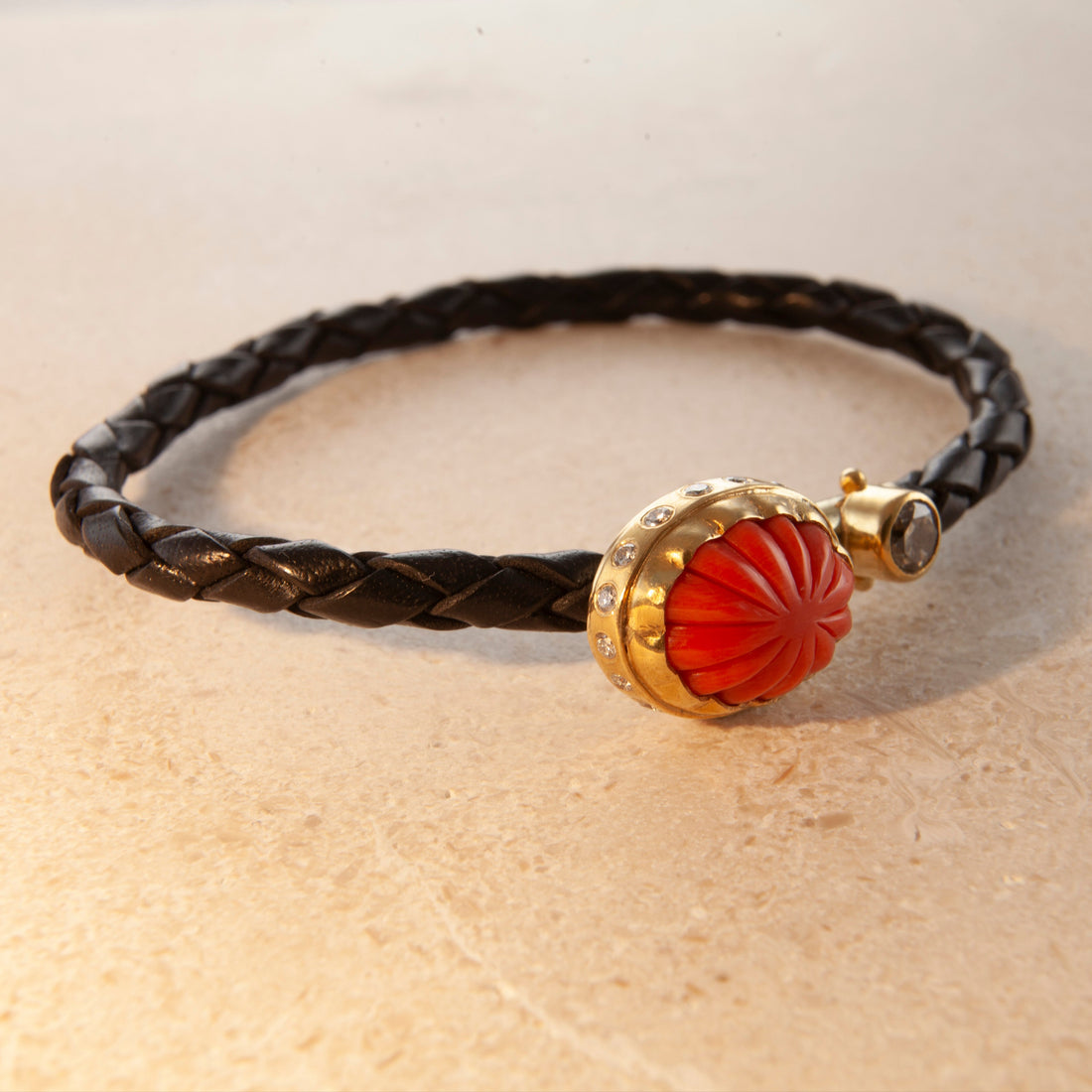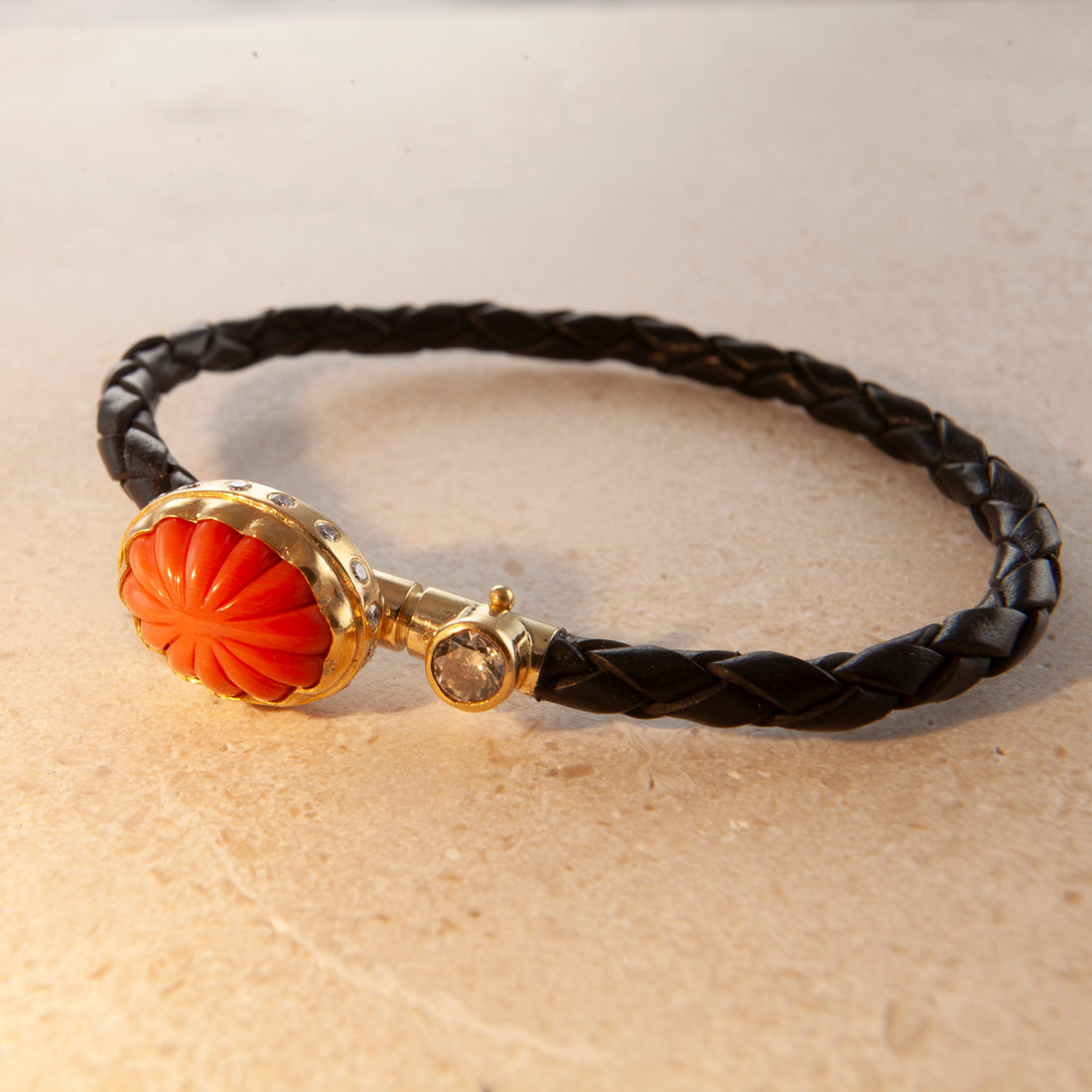 Materiale: 18, 22 karat guld Ædelstene: Koral, 0.51 ct. diamant, 17 x 0.015 ct. TW...