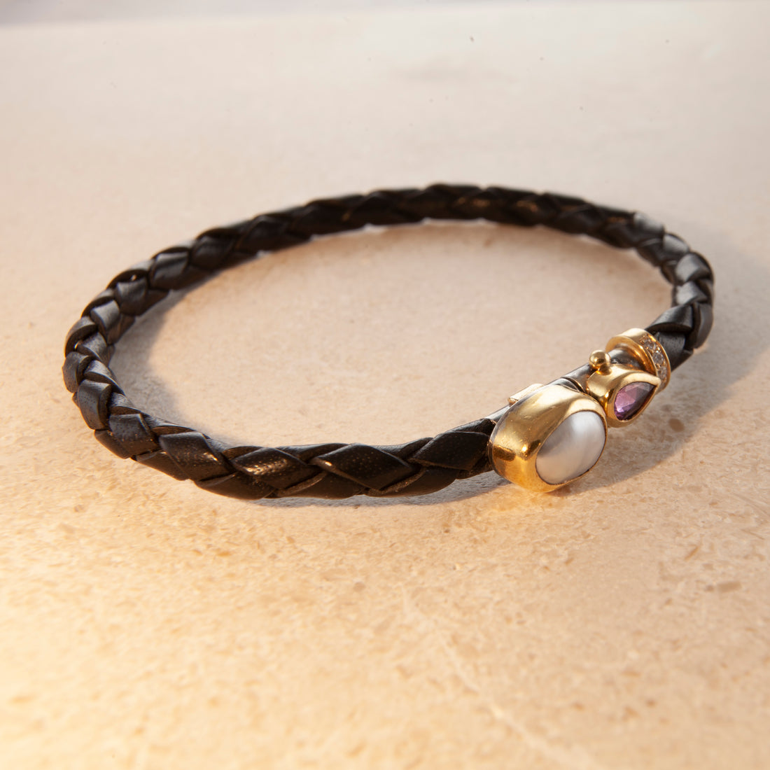 Material: Sølv, 18, 22 karat guld Ædelsten: 0.62 ct. Rose cut diamant, Tahiti Keshi Perle. ...