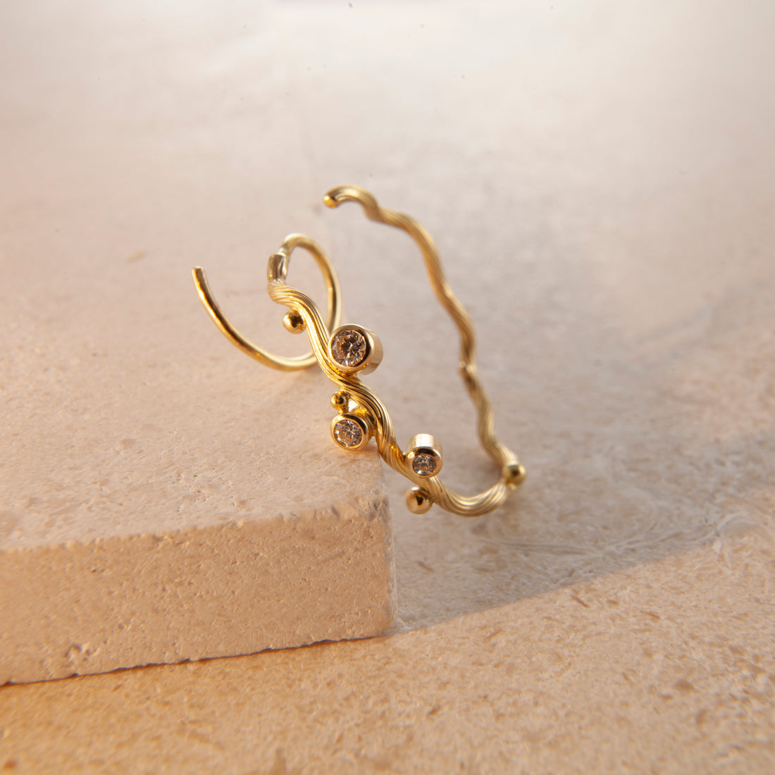 Material: Silver, 18, 22, 24k gold Size: 25 mm Gems: 0.02 ct., 0.04 ct. champagne...