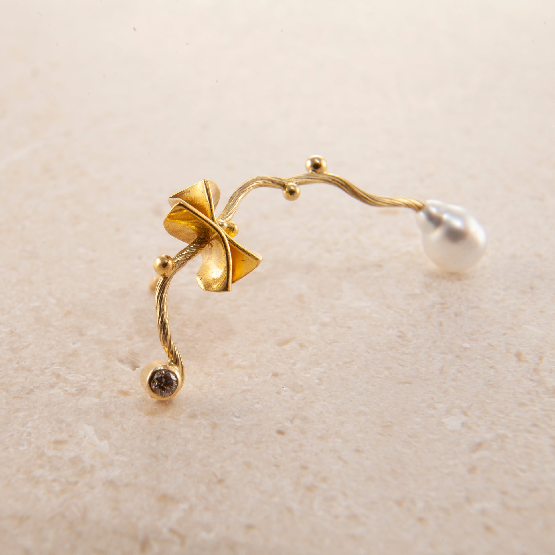 Gems: 0.04 ct. champagne brilliant cut diamond, keshi pearl