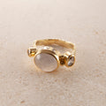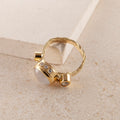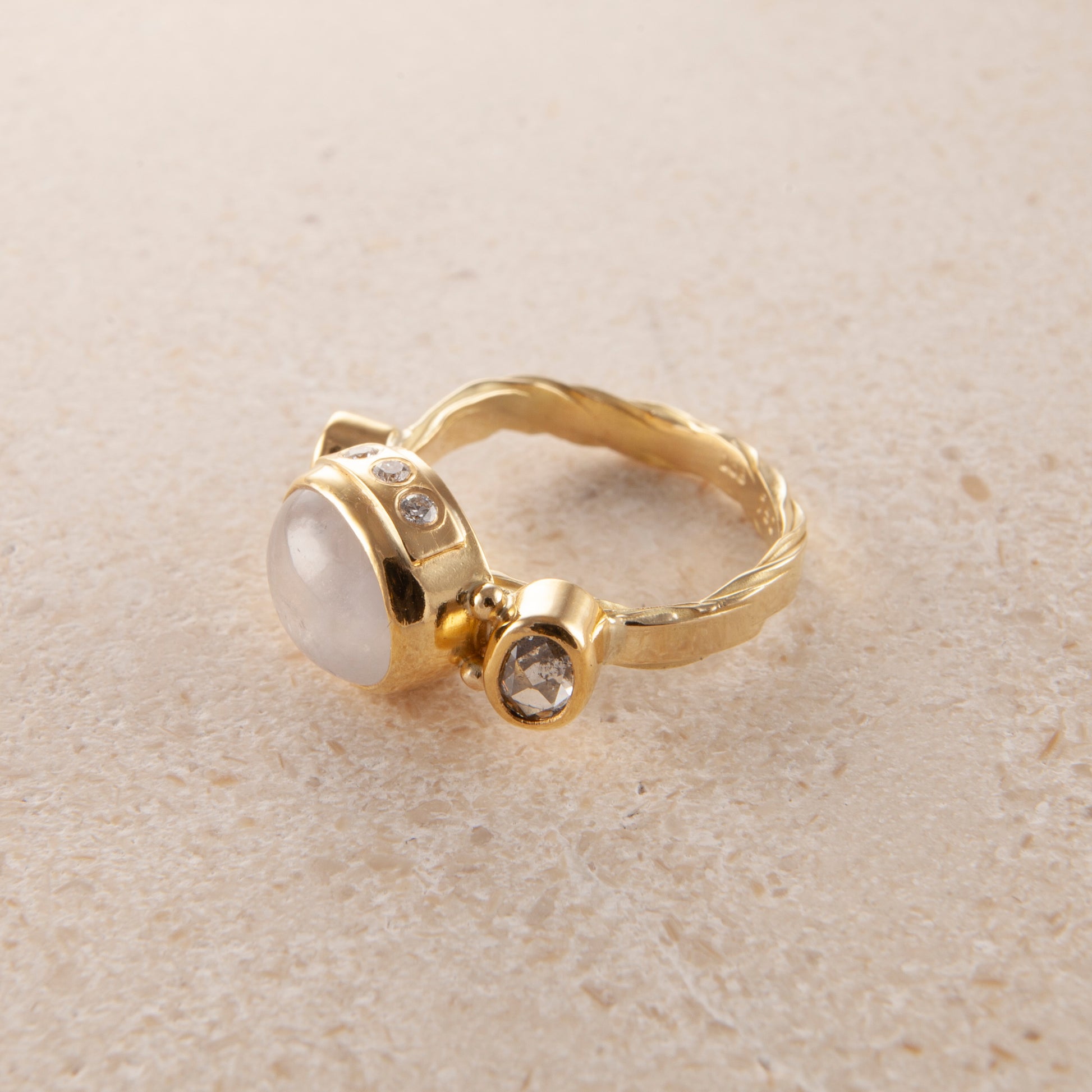 Gems: Star sapphire, 0.20 ct. antique cut diamond, 0.15 ct. champagne brilliant cut diamond, 3 x 0.02 ct. TW vs brilliant cut diamonds