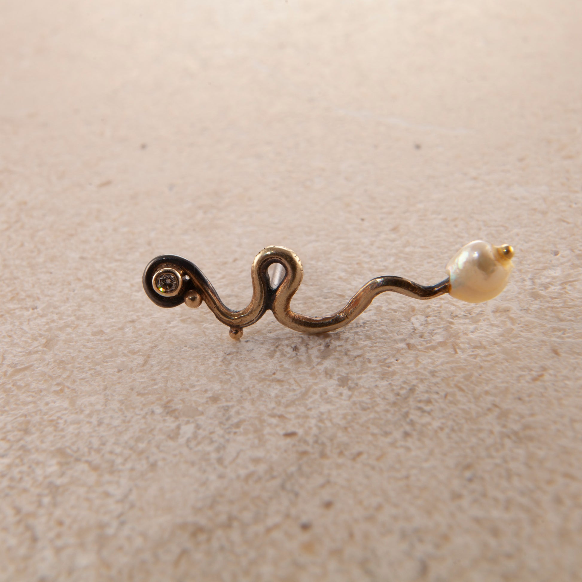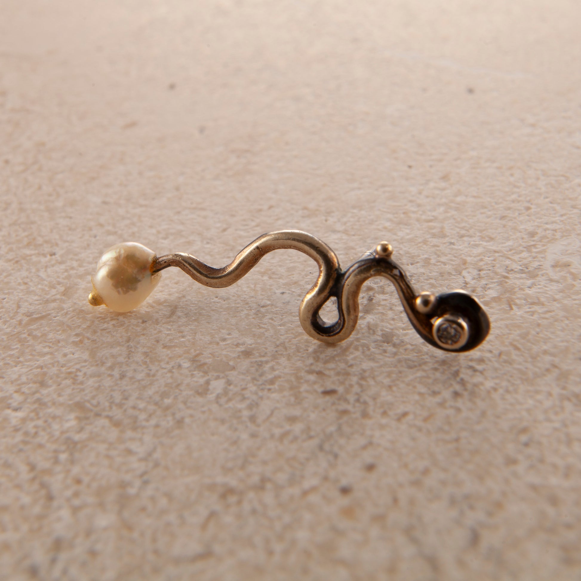 Gems: Keshi pearl, 0.02 ct. champagne brilliant cut diamond