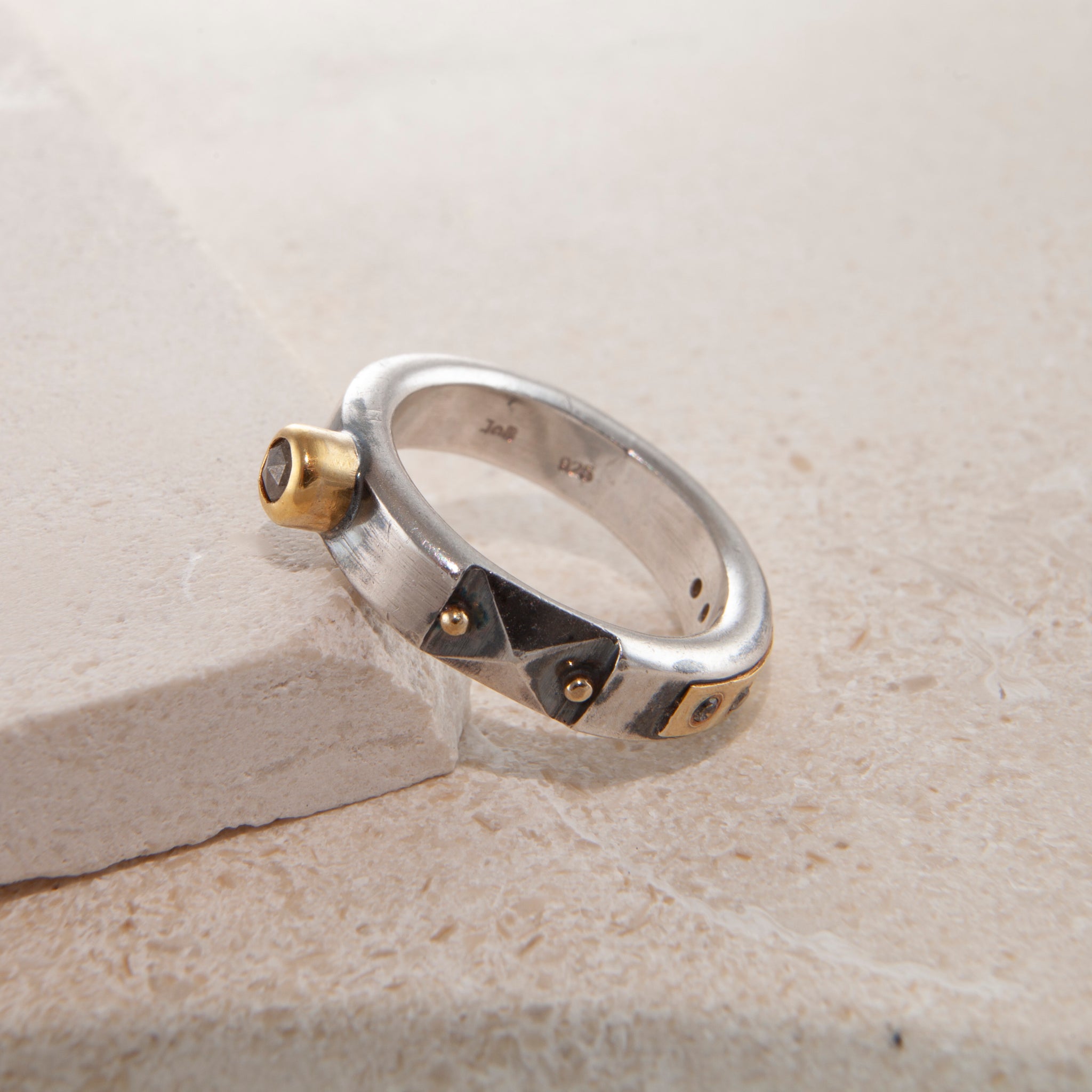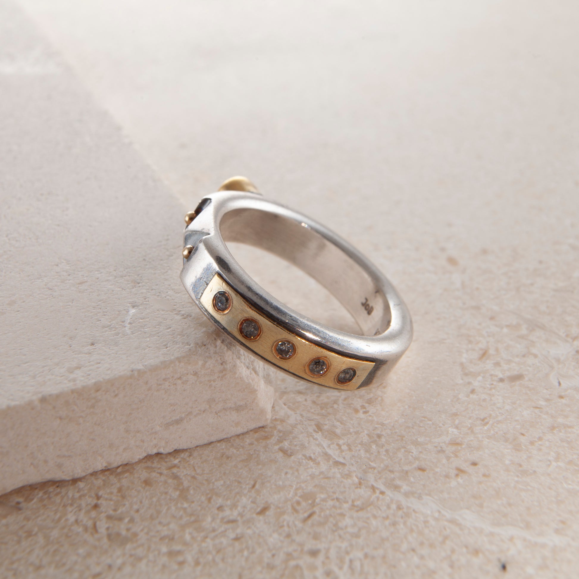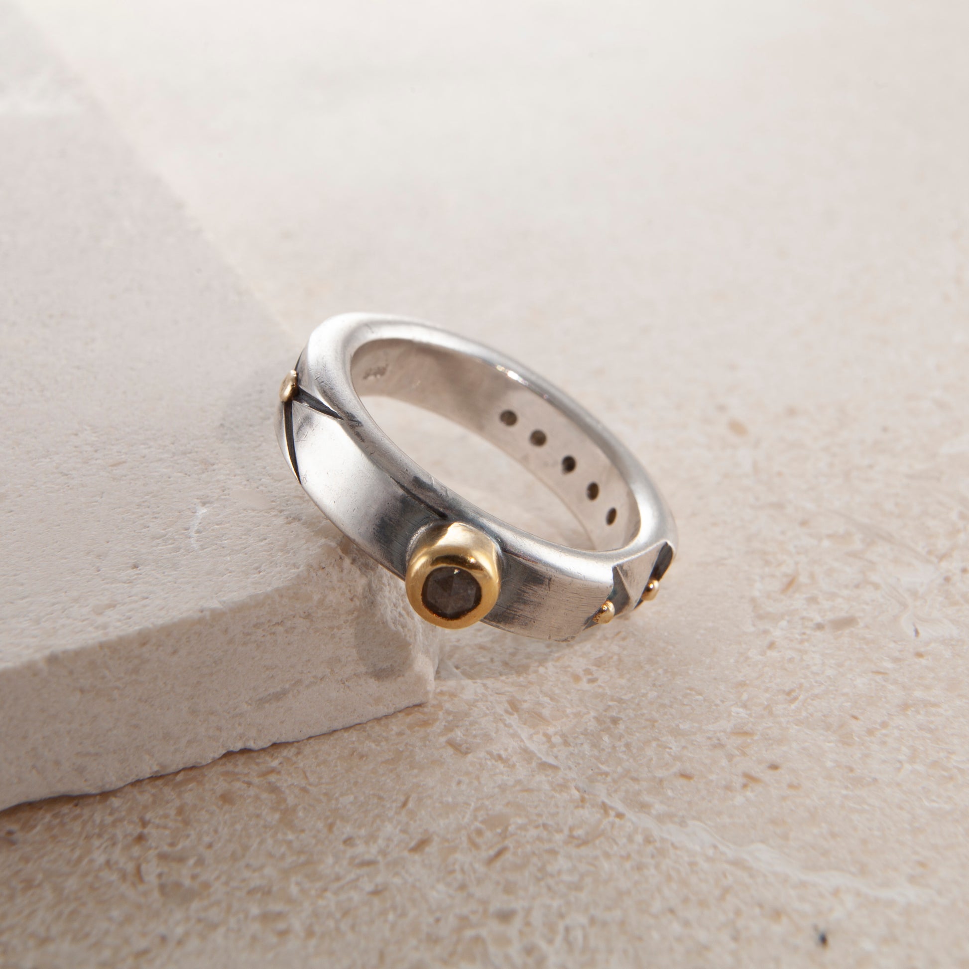 Gem: 0.20 ct. rosecut diamond, 5 x 0.01 ct. grey brilliant cut diamonds