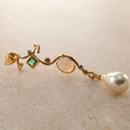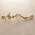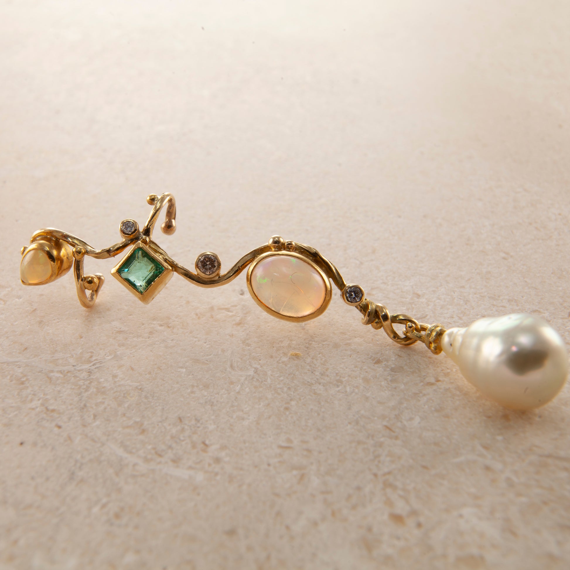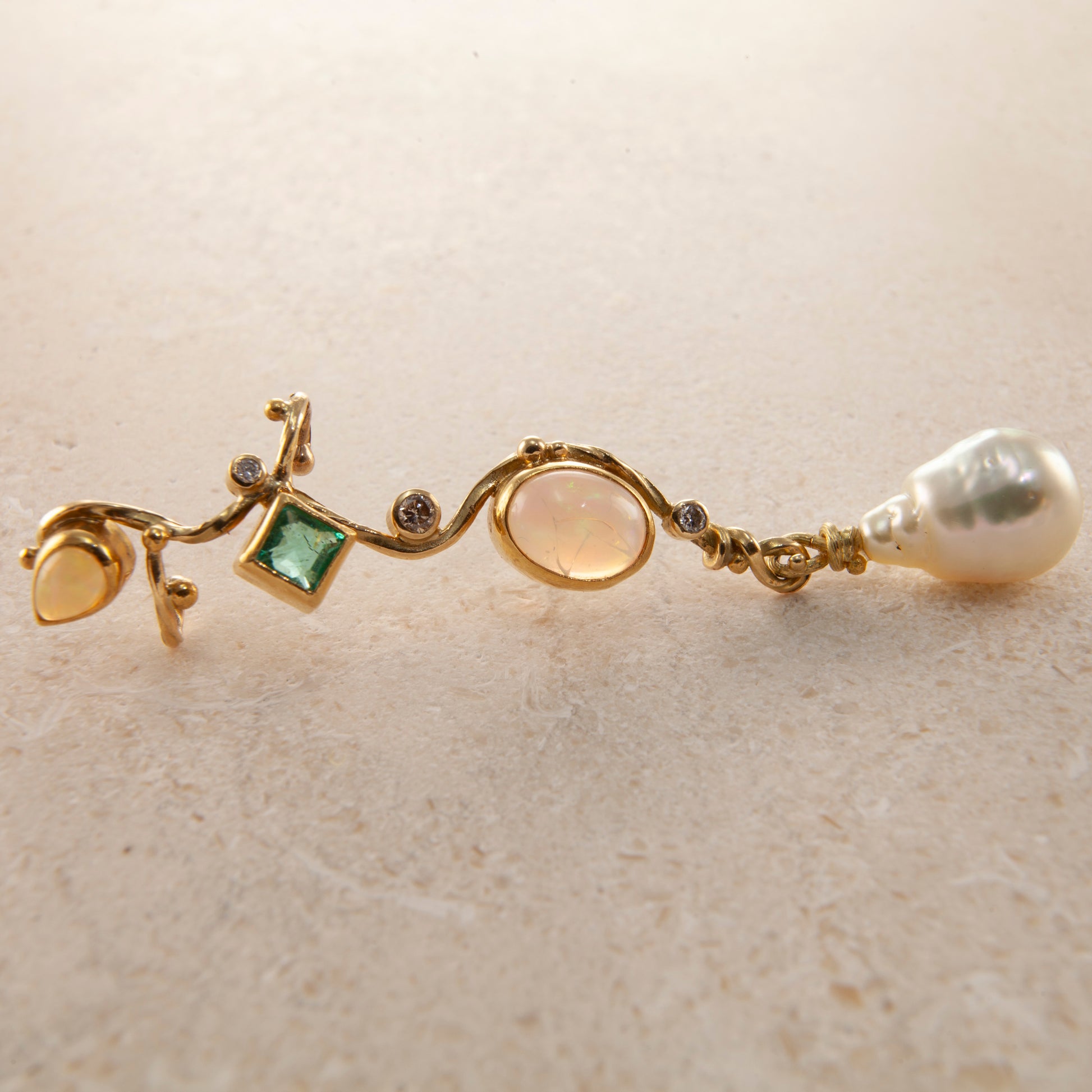 Gems: South Sea pearl, fire opals, emerald, 0.06 ct. champagne brilliant cut diamond, 0.04 ct., 0.02 ct. TW vs brilliant cut diamonds