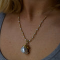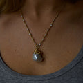 Gems: South sea pearl, 0.28 ct. pear shaped diamond, 2 x 0.04 ct. TW vs brilliant cut diamonds, keshi pearls