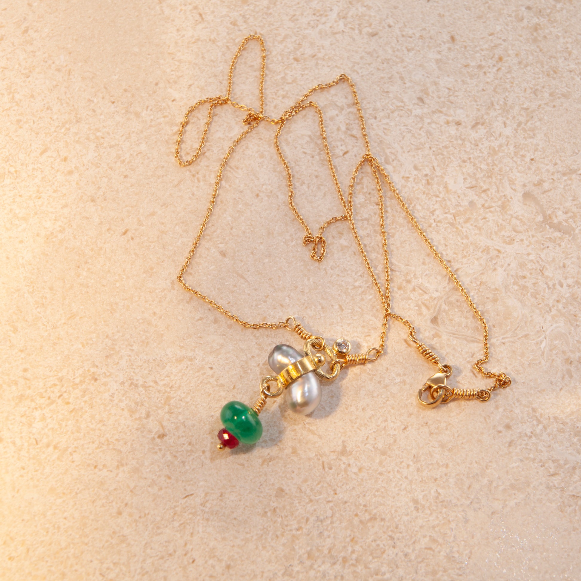 Gems: Tahiti keshi pearl, emerald, ruby, 0.04 ct. TW vs brilliant cut diamond