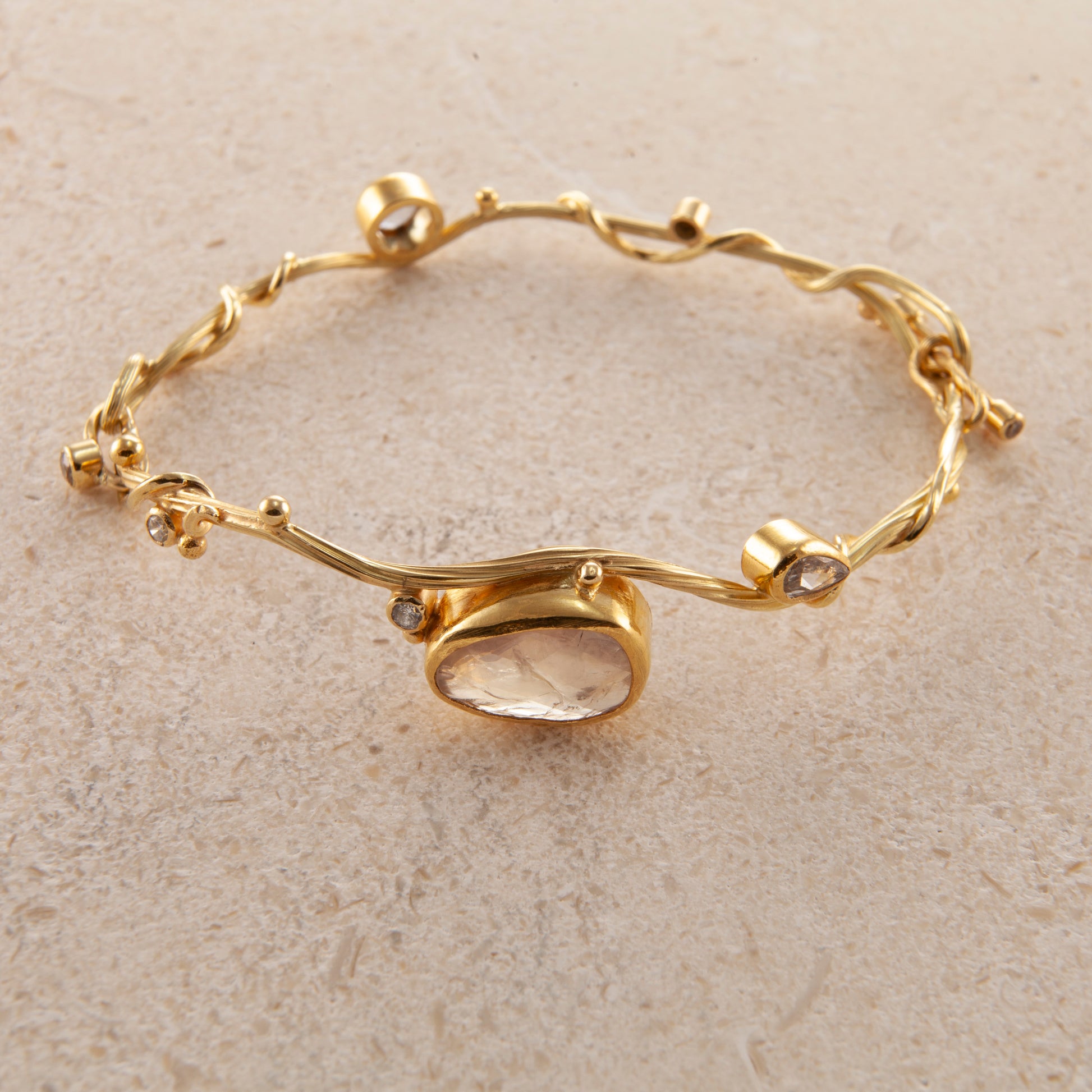 Gems: Sapphire, 0.22 ct. pear shaped diamond, 0.18 ct. rose cut diamond, 2 x 0.04 ct. TW. vs. brilliant cut diamonds, 0.06 ct. champagne brilliant cut diamond, 0.04 ct. champagne brilliant cut diamond, 2 x 0.02 ct. .champagne brilliant cut diamond.