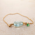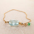 Gemstone: Aquamarine, 0.04 ct. champagne brilliant cut diamond, 2 x emerald