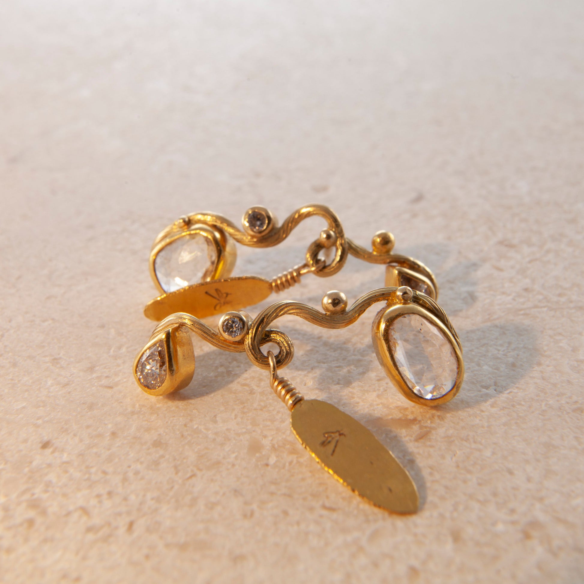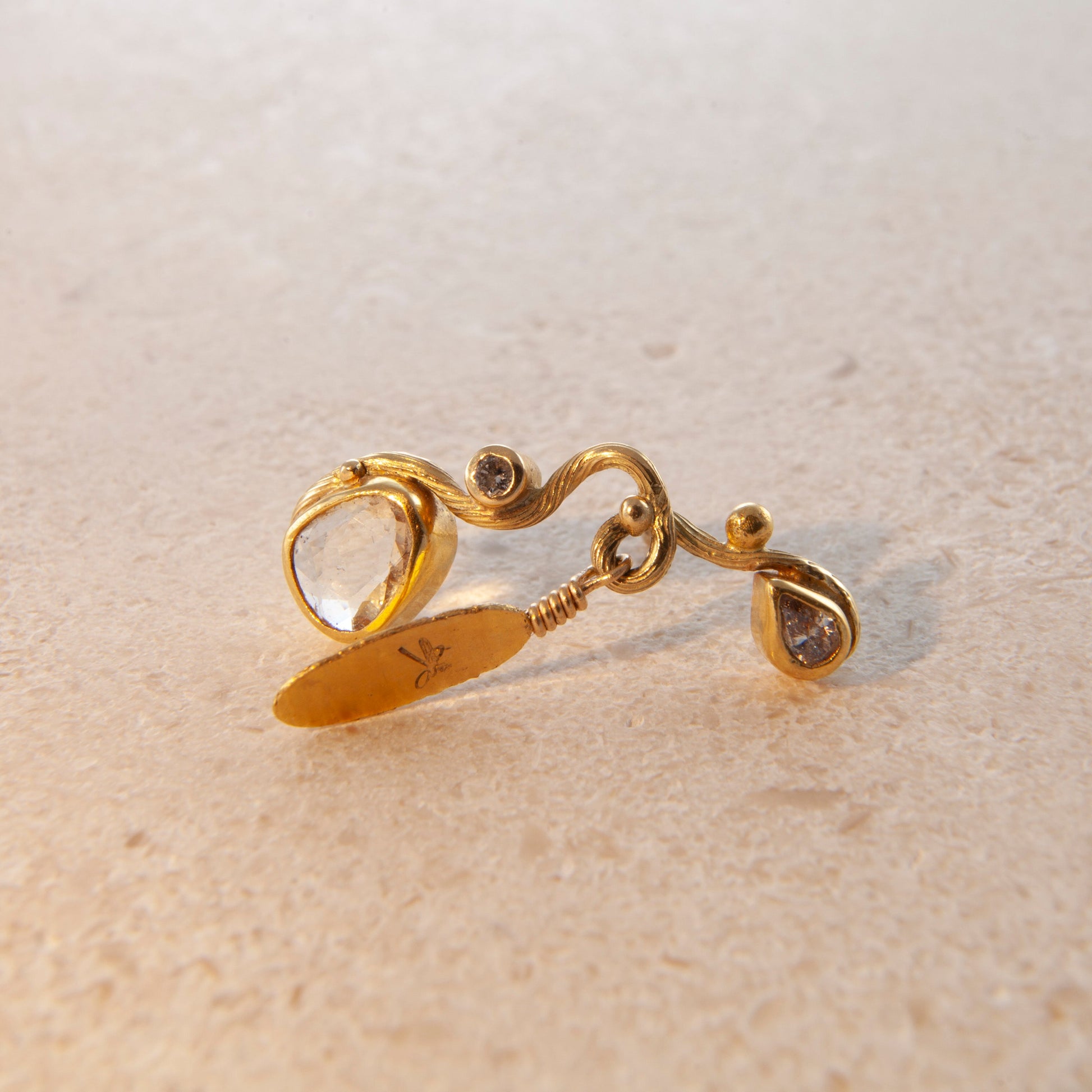 Gems: Rose cut sapphires, 0.11 ct. pear shaped diamond, 0.18 ct pear shaped diamond, 0.04 ct., 0.02 ct. TW vs brilliant cut diamonds