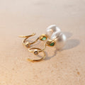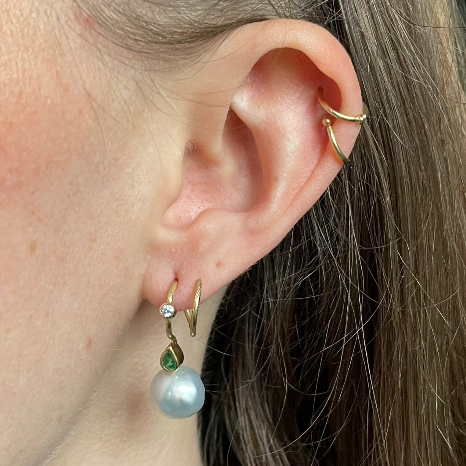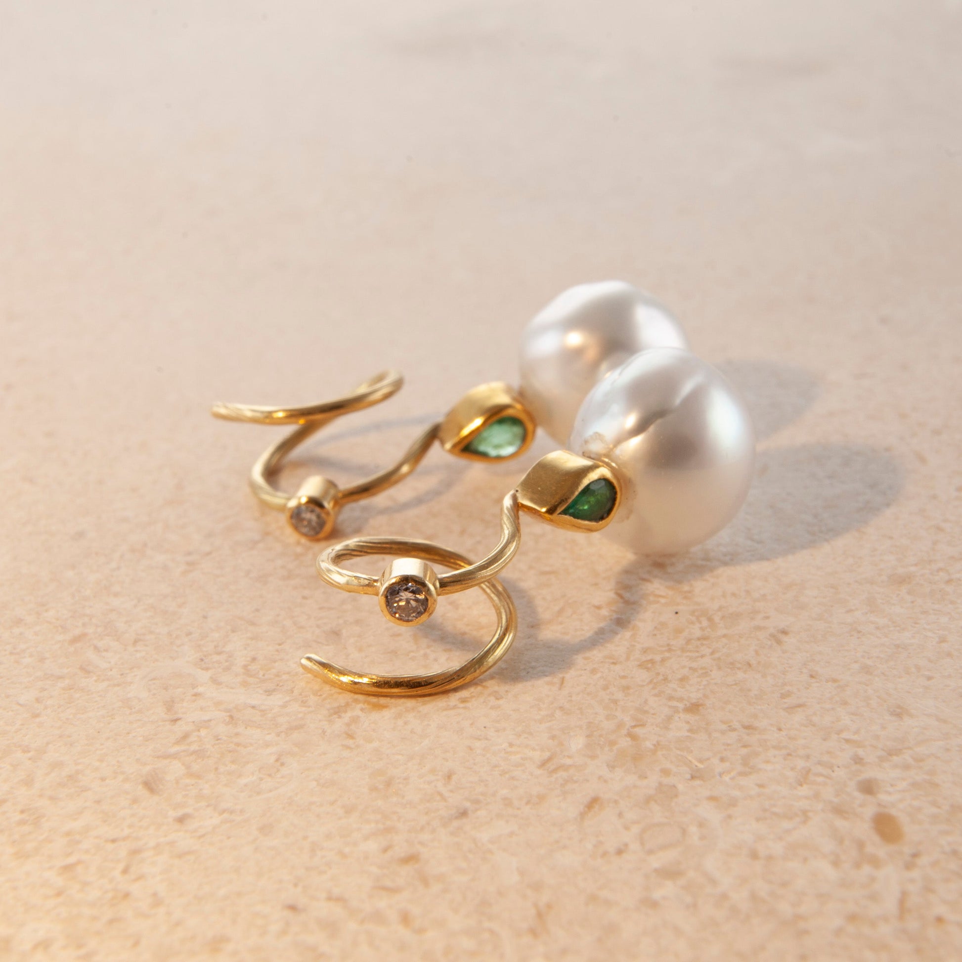 Gems: South sea pearls, pear shaped emeralds, 2 x 0.04 ct. TW vs brilliant cut diamonds