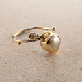 Gems: Golden Keshi Pearl, 0.06 ct. TW vs Brilliant cut diamond