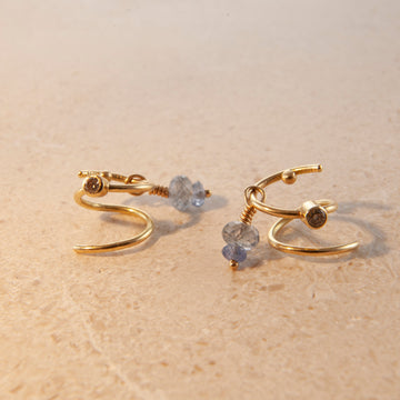Gems: Blue sapphires, 2 x 0.04 ct. champagne brilliant cut diamonds