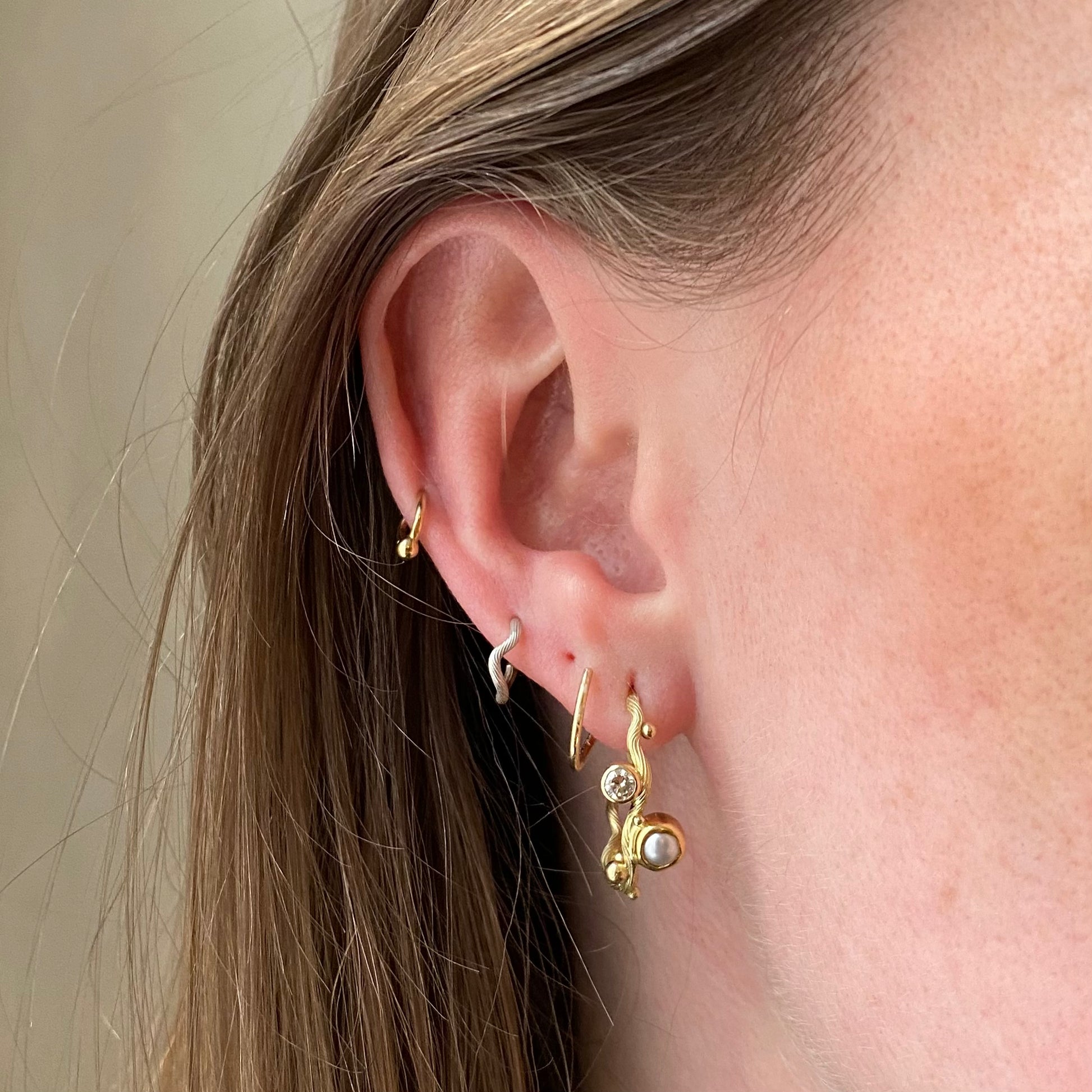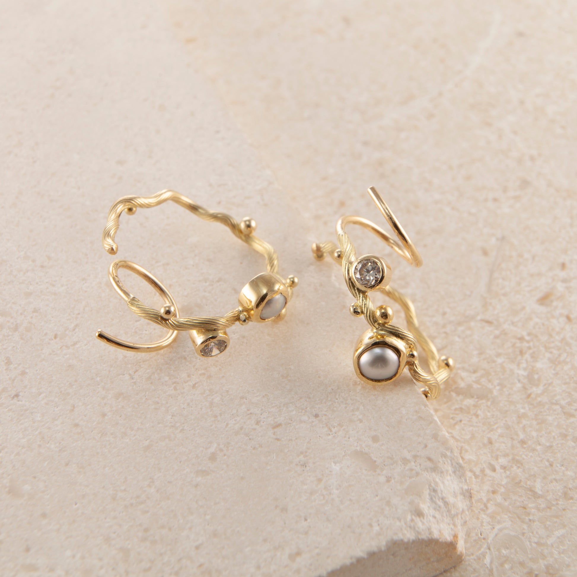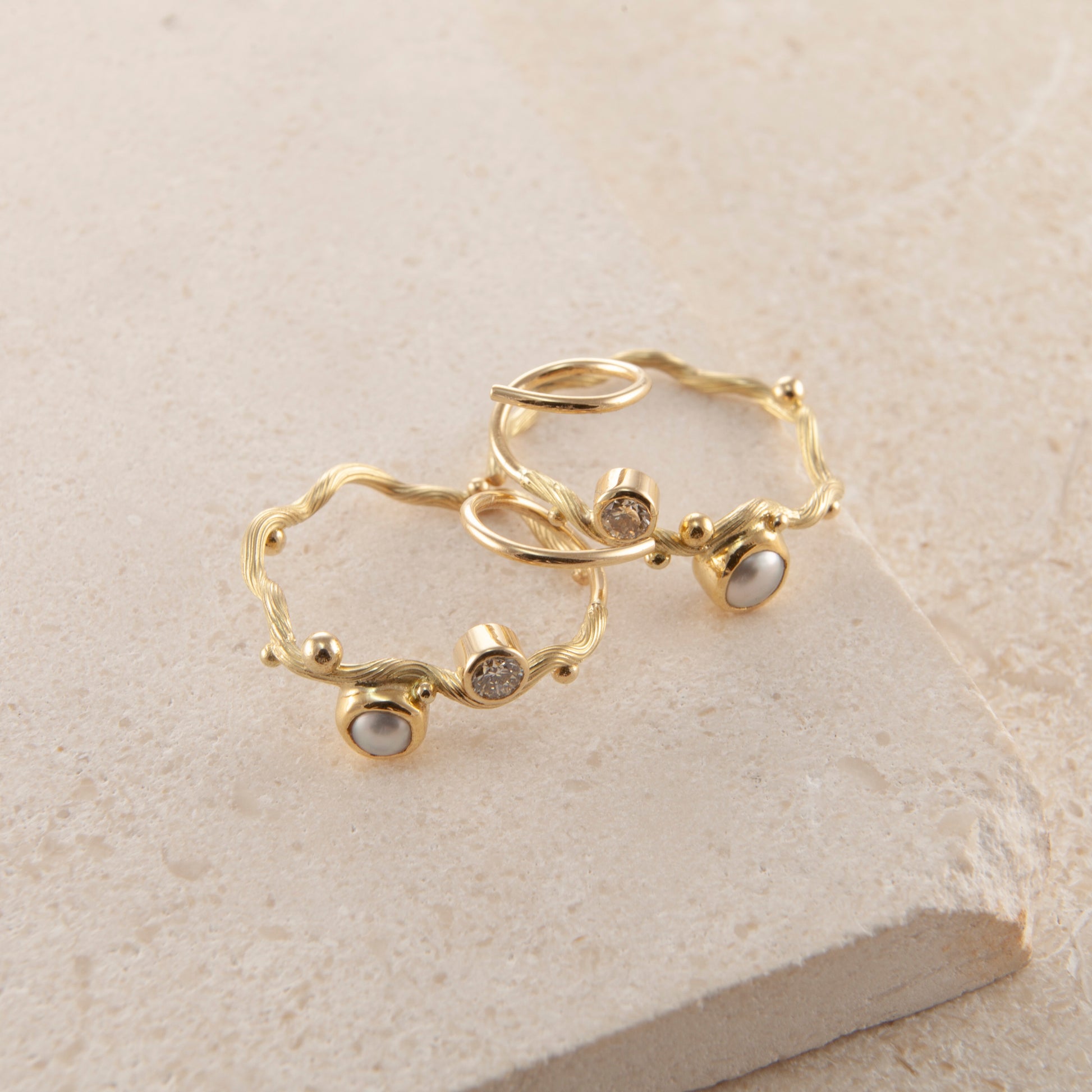Gems: 2 x 0.11 ct. champagne brillant cut diamonds, 2 x keshi pearls