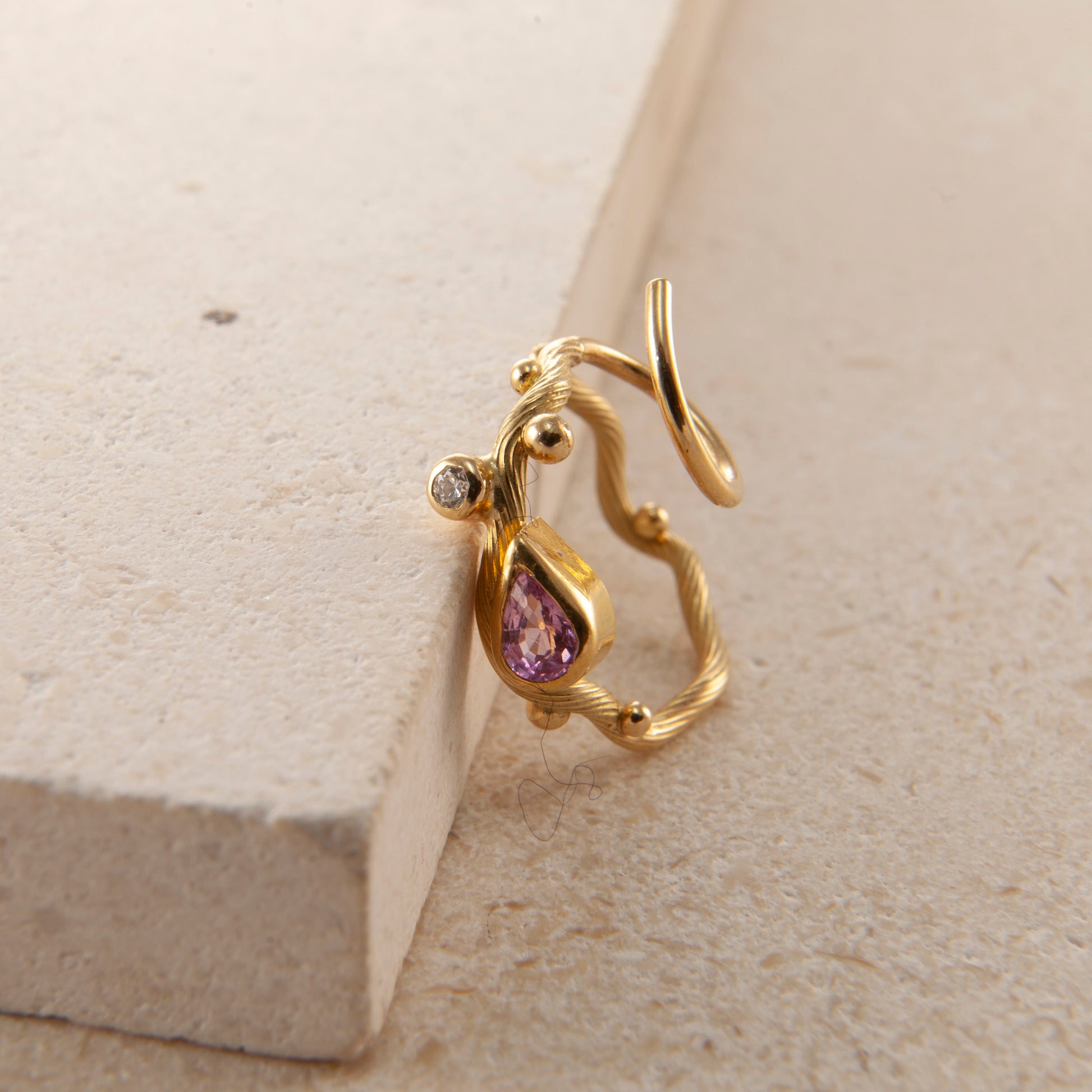Gems: Pink pear shaped sapphires, 2 x 0.02 ct. TW vs brilliant cut diamonds