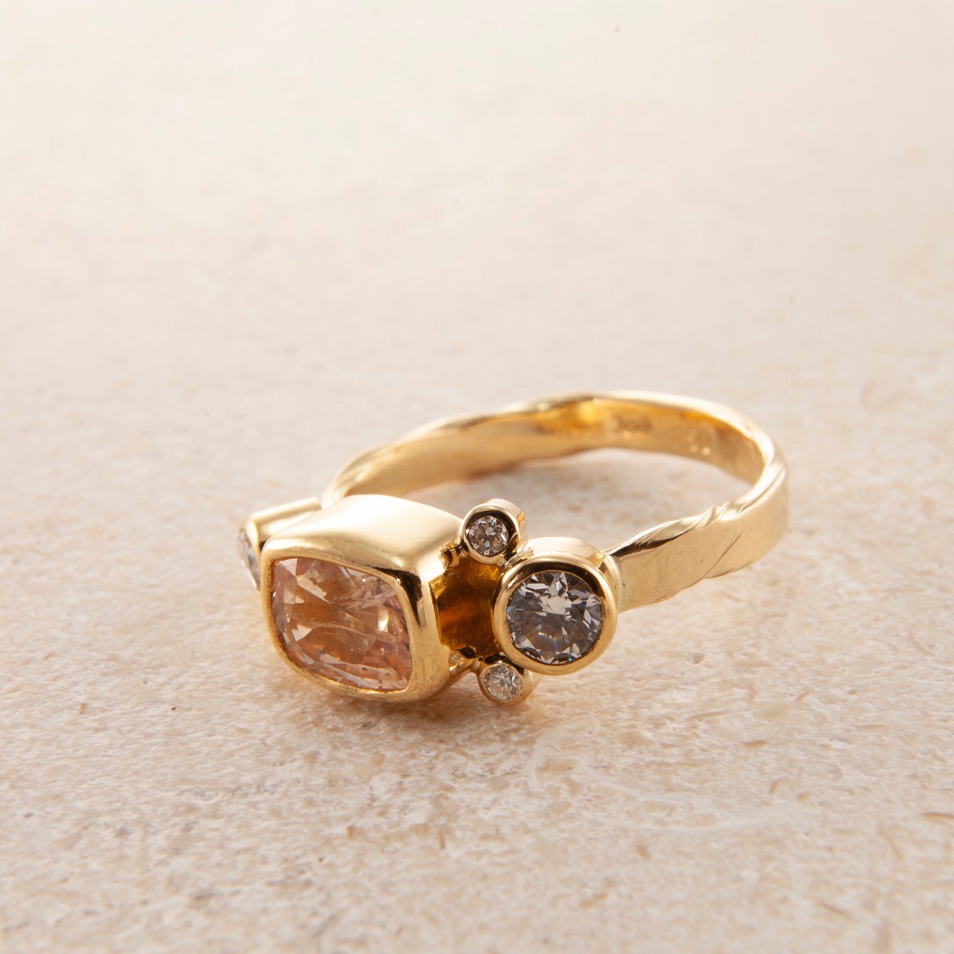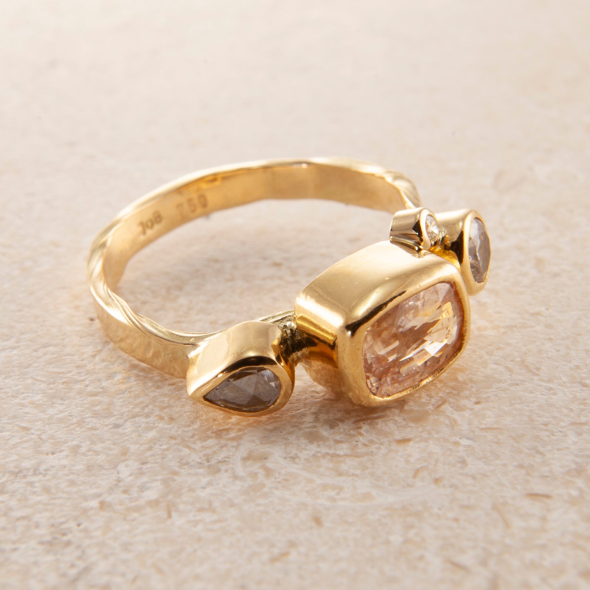 Ædelsten: 2.19 ct. Safir, 0.33 ct. brilliant cut Diamant, 0.17 ct. pear shaped antique cut Diamant, 2 x 0.02 ct. TW vs brilliant cut Diamanter.