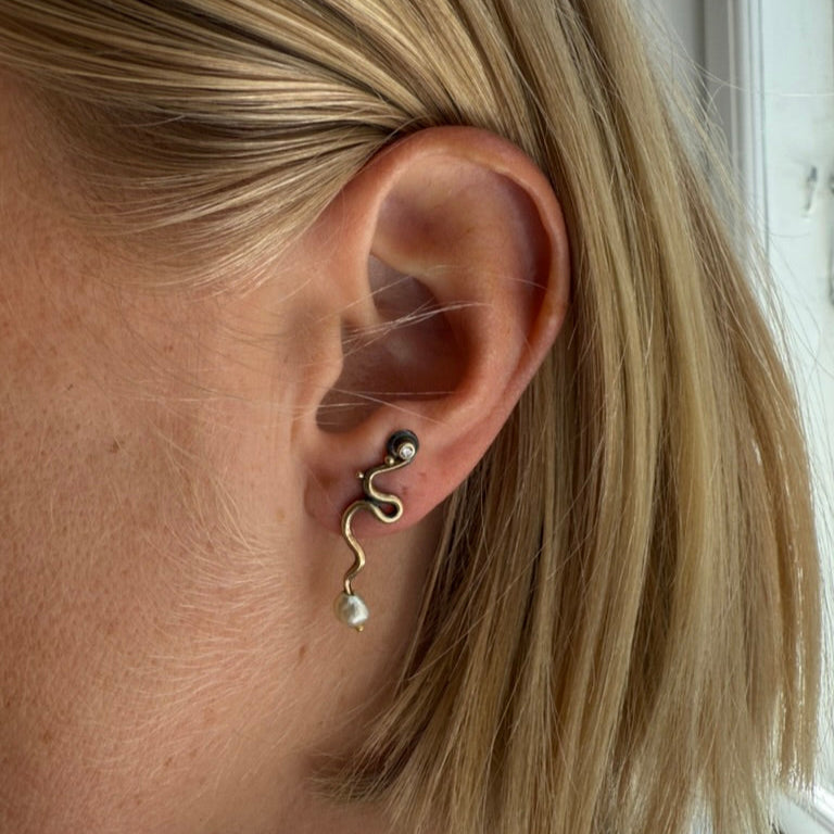 Ædelsten: Keshi-perle, 0,02 ct. champagnefarvet brillantslebet diamant