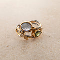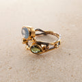 Ædelsten: Blå Cabochon Safir, Grøn Dråbeformet Safir, 0.10 ct. TW. VS. Brilliant Cut Diamant, 0.02 ct. Champagne Brilliant Cut Diamant.