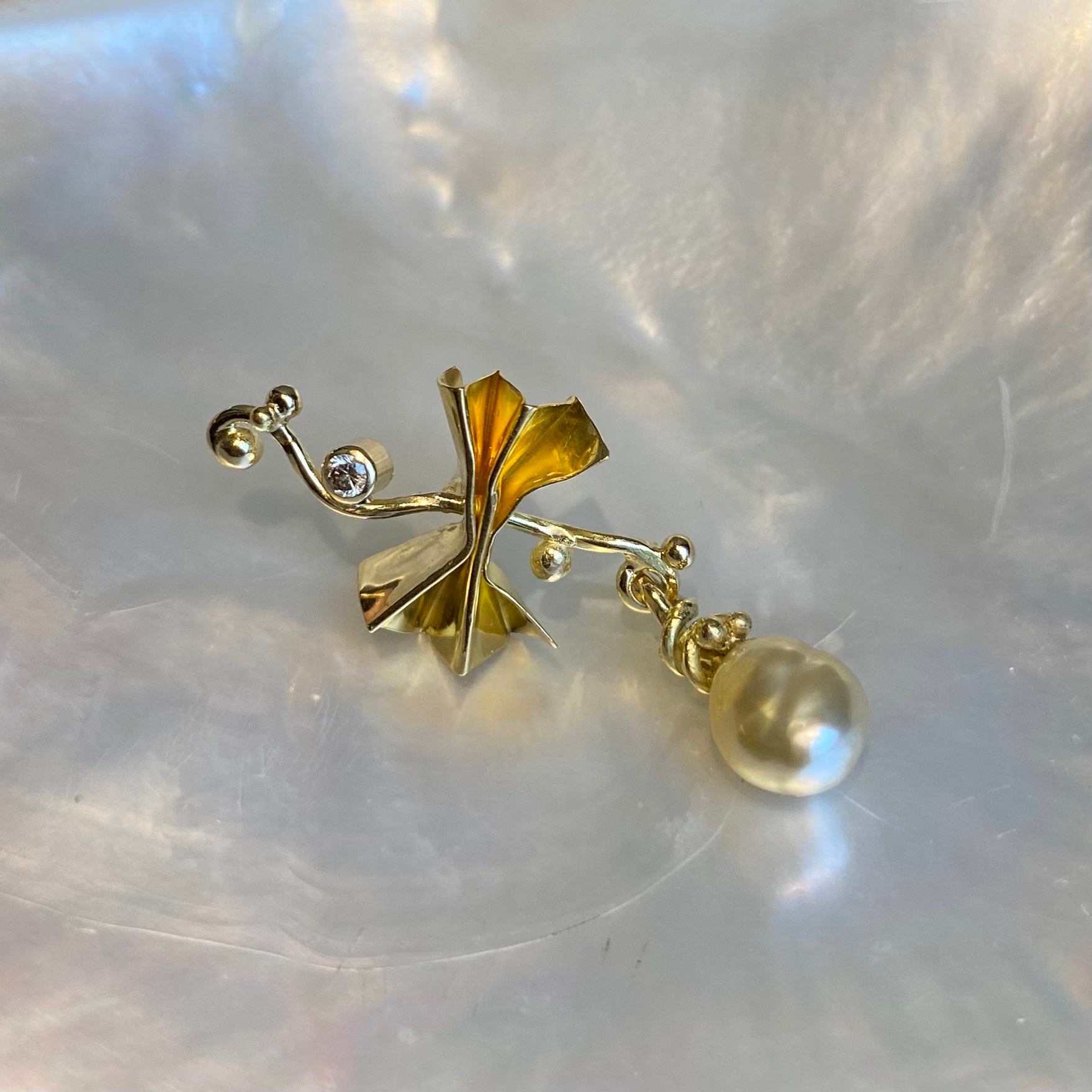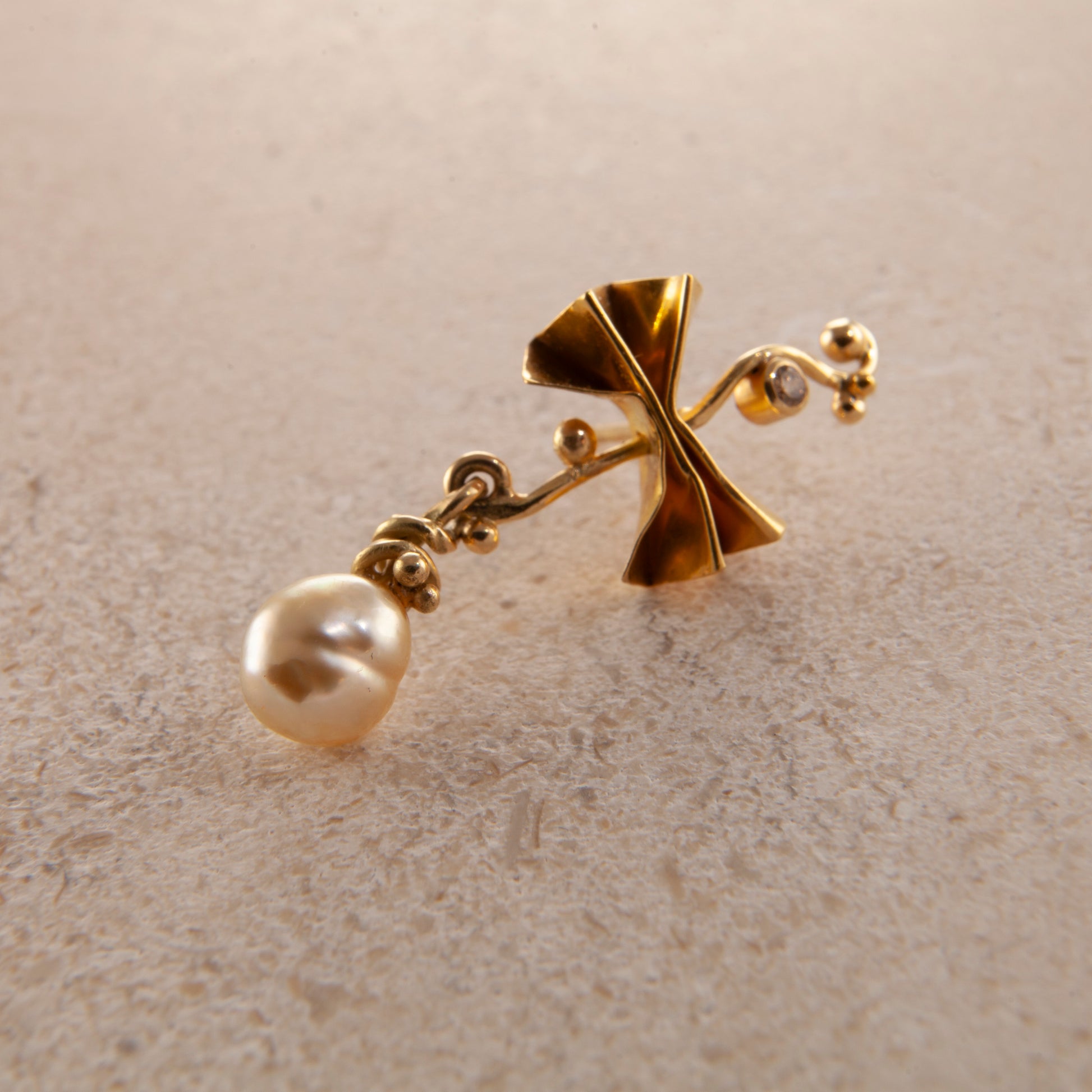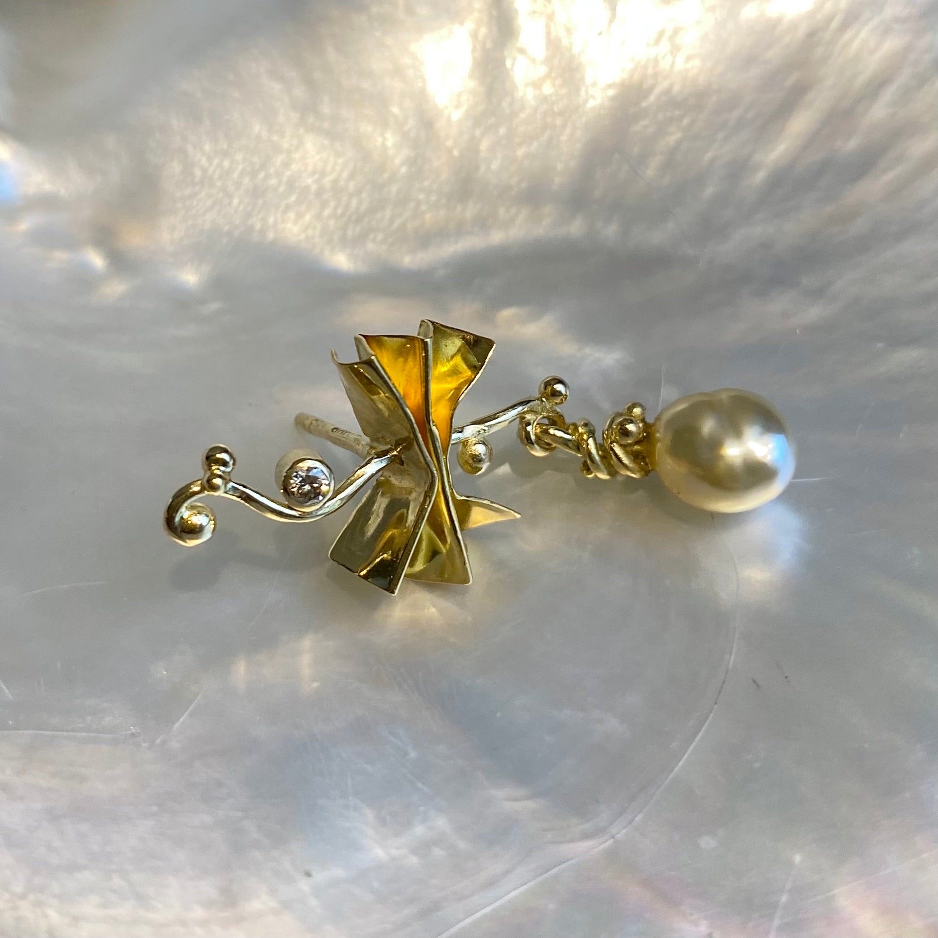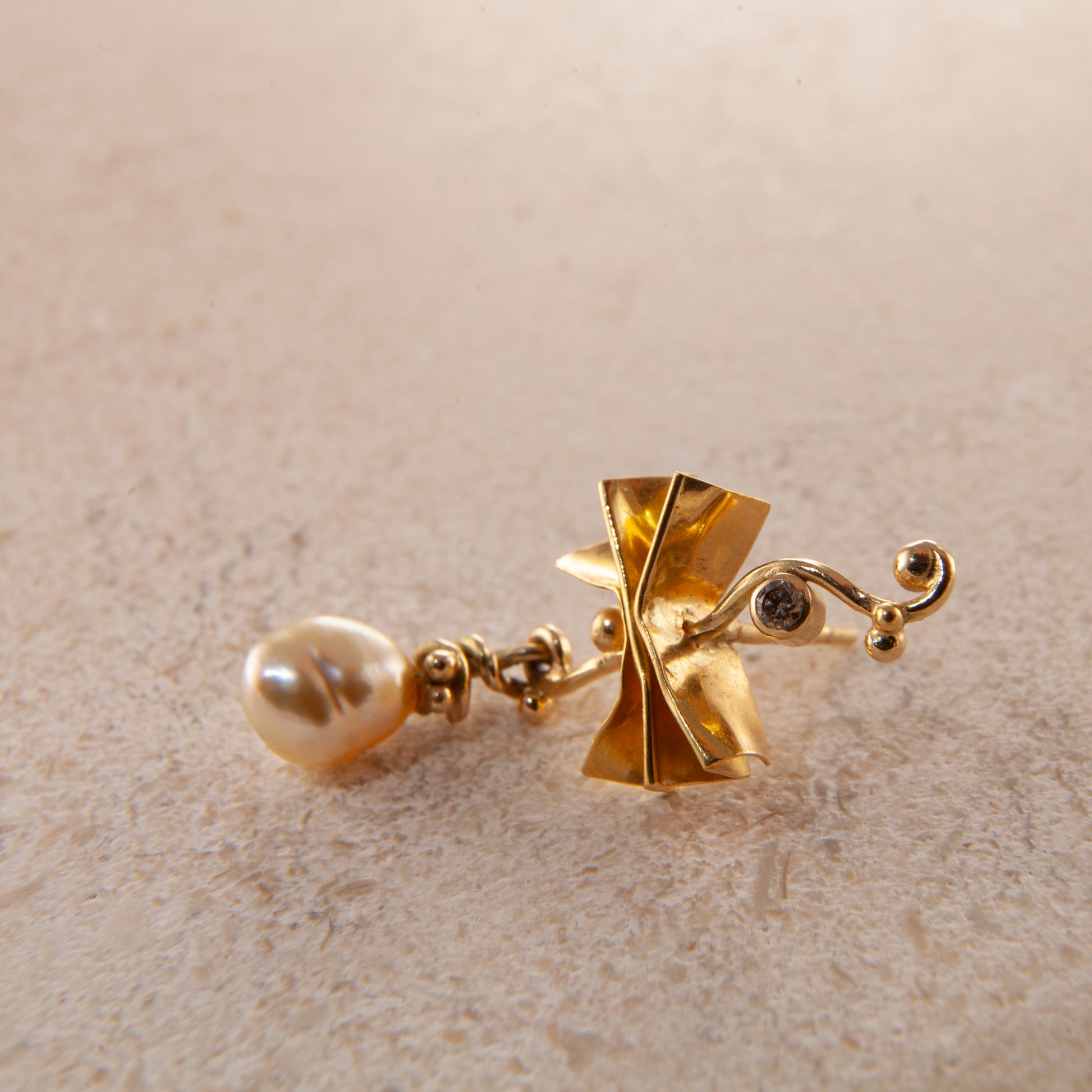 Ædelsten: Keshi-perle , 0,04 ct. champagnefarvet brillantslebet diamant