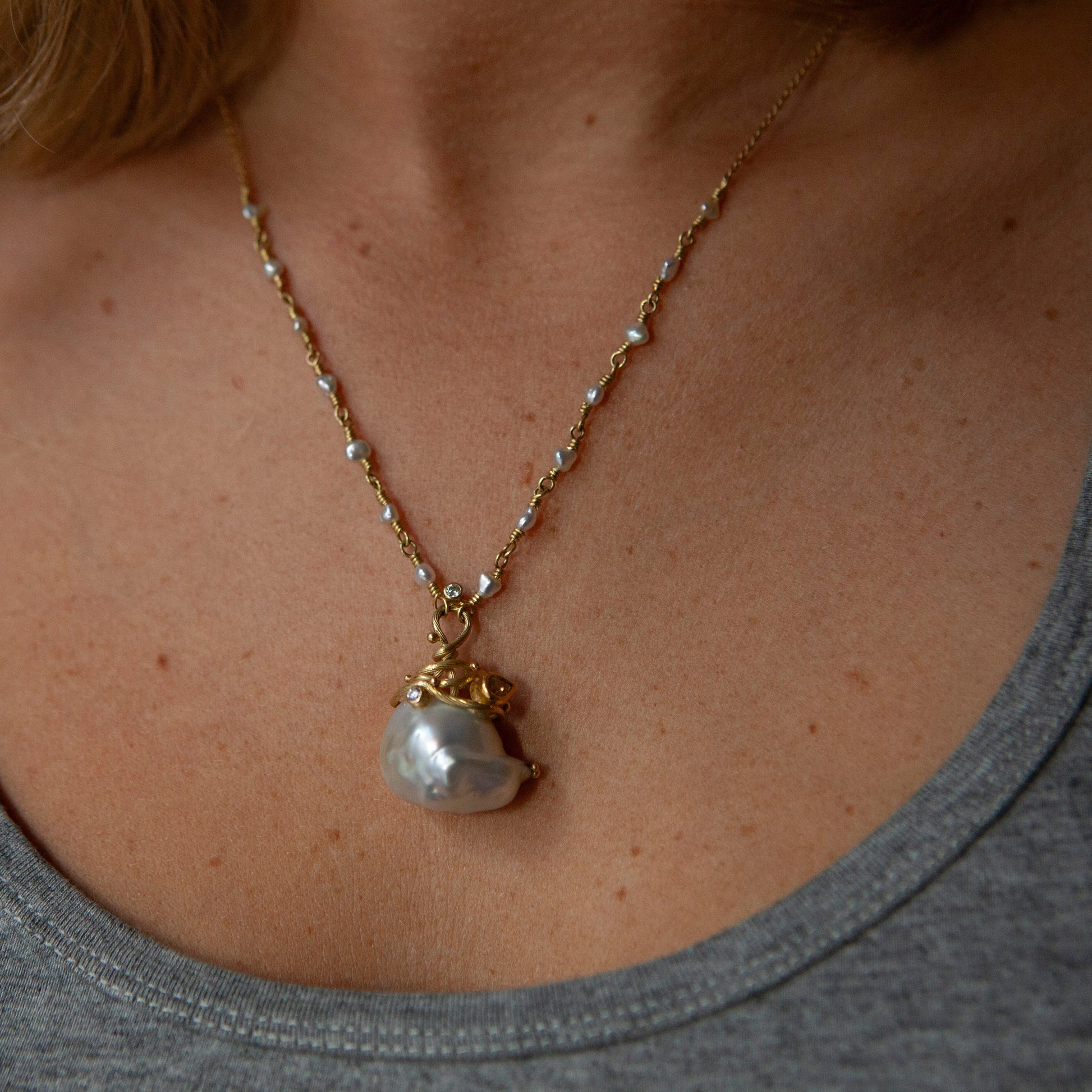 Ædelsten: South sea perle, 0,28 ct. dråbeformet diamant, 2 x 0,04 ct. TW vs. brillantslebne diamanter, keshi perler