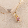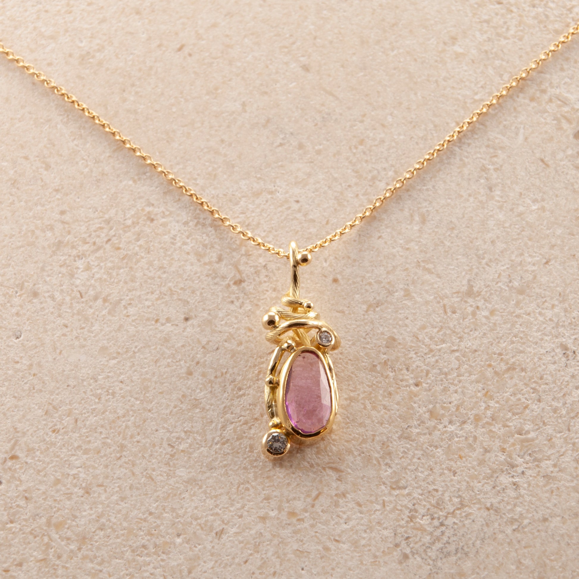 Ædelsten: Pink safir, 0.06 ct. champagnefarvet brilliantslebet diamant, 0.02 ct. TW vs brilliantslebet diamant