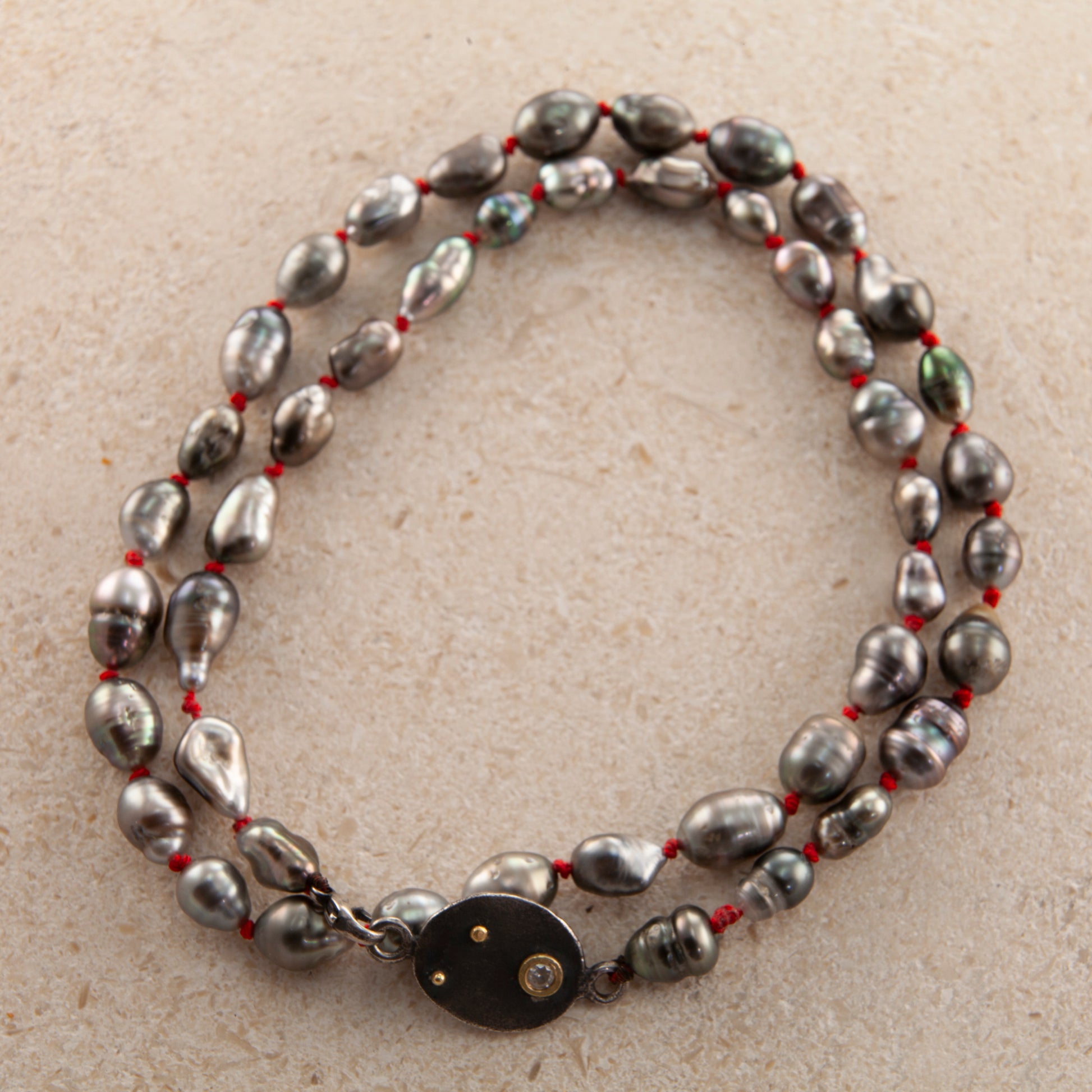 Ædelstene: Tahiti perler, 0.04 ct. salt og peber grå brillant