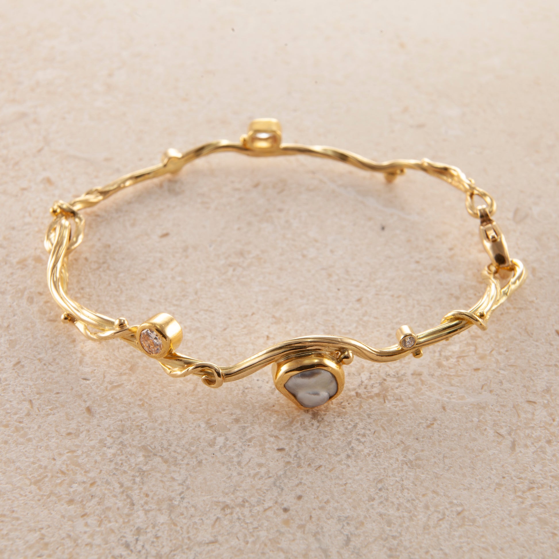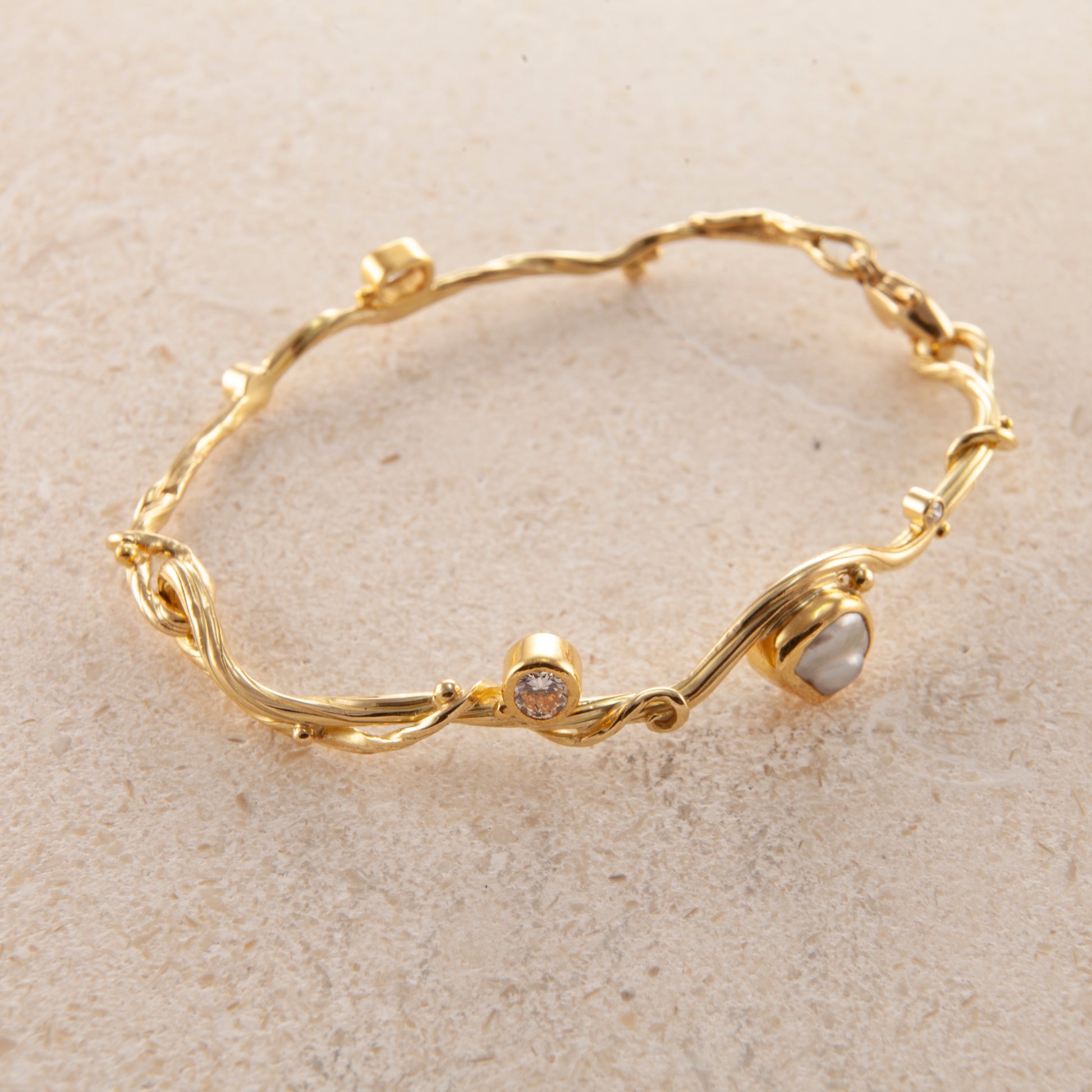 Ædelsten: Keshi-perle, 0,25 ct. brillantslebet diamant , 0,15 ct. rosenslebet diamant, 0,06 ct. 0,02 ct. TW VS brillanter