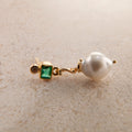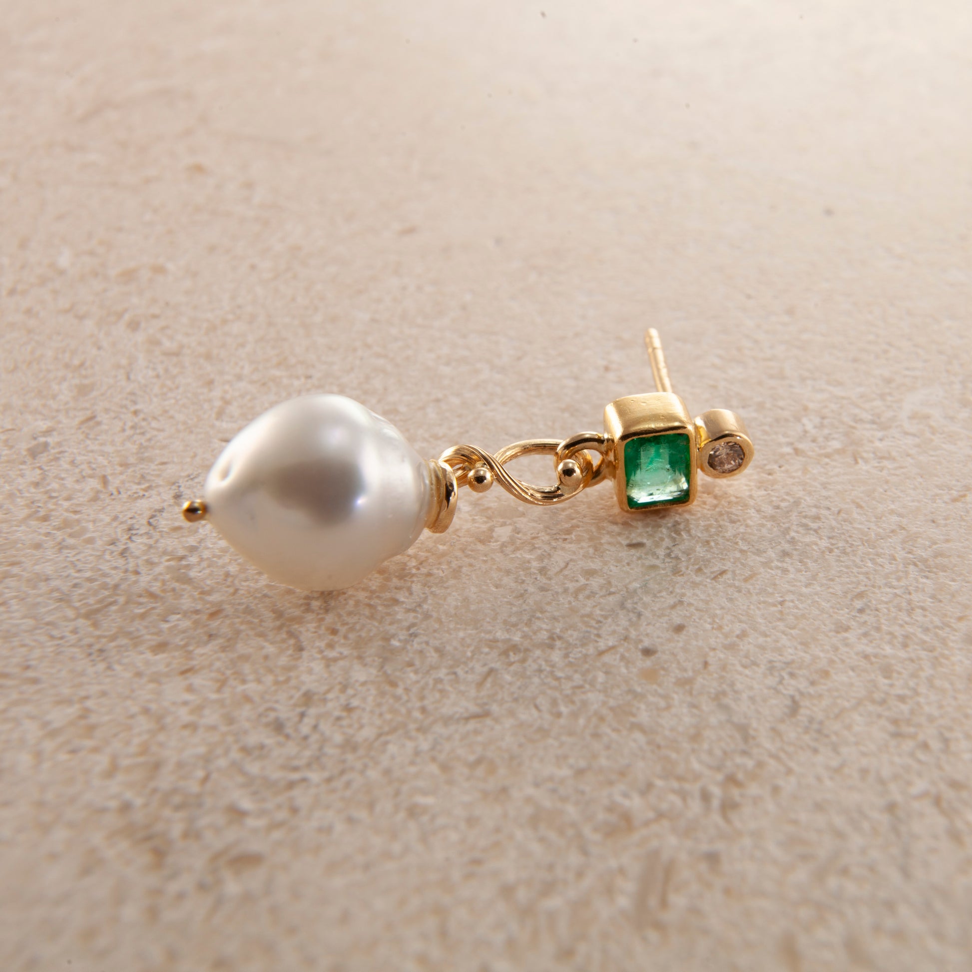 Ædelsten: Smaragd, 0,06 ct. champagnefarvet brillantsleben diamant, South Sea-perle