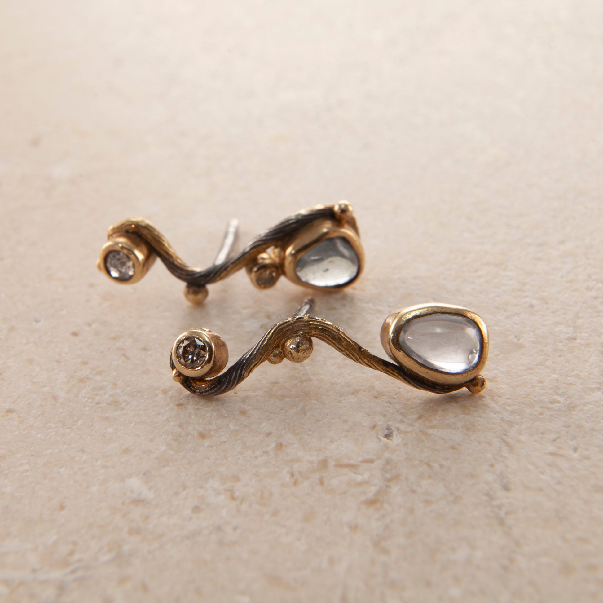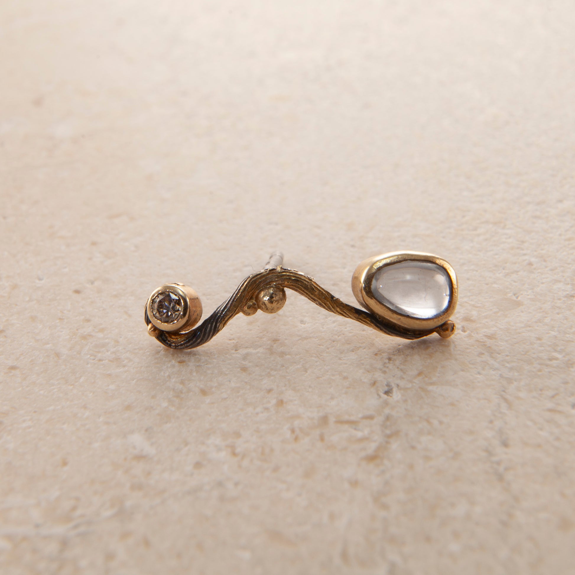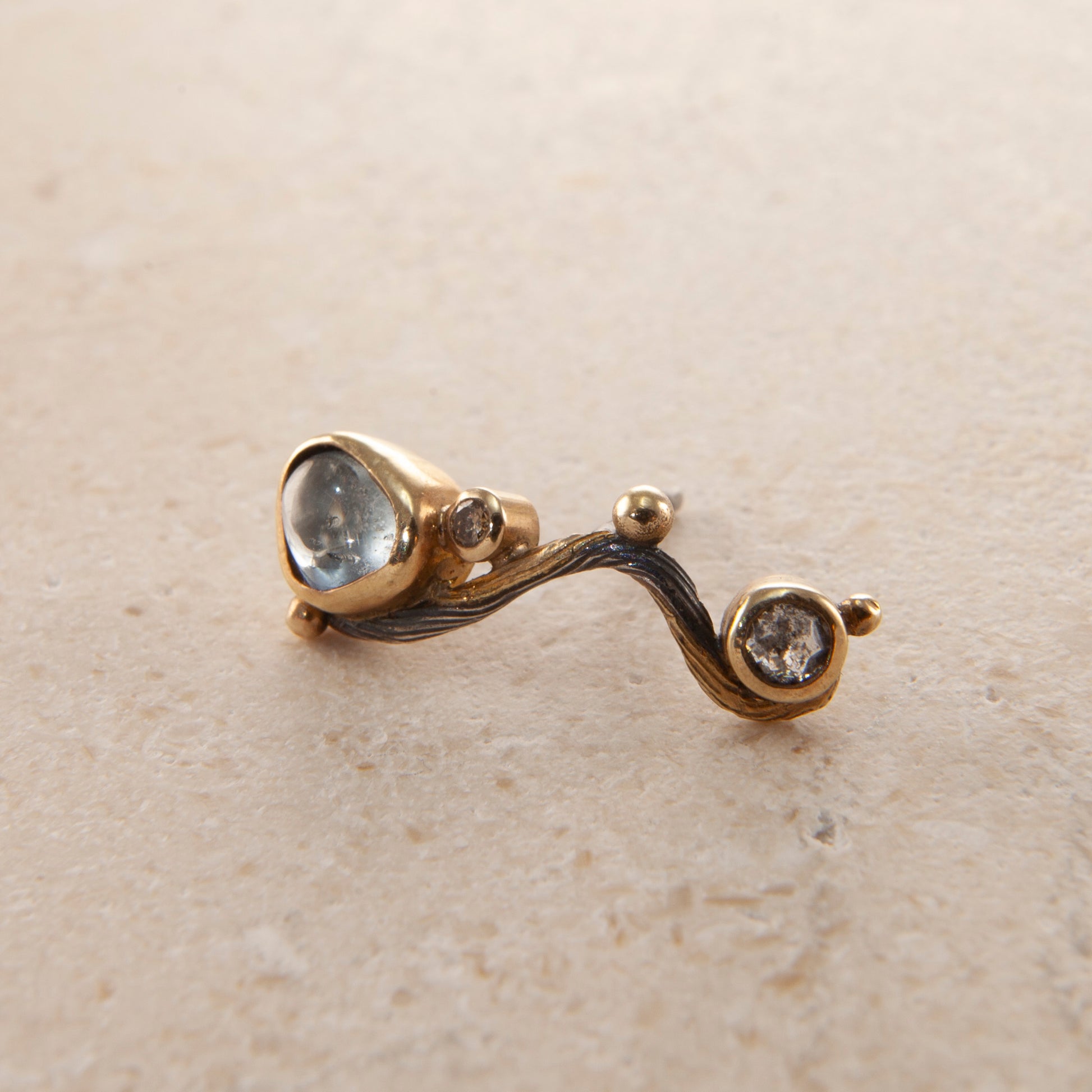 Ædelsten: Blå safirer, 0,08 ct. grå rosenslebet diamant, 0,02 ct., 0,06 ct. champagnefarvet brillantslebet diamant.