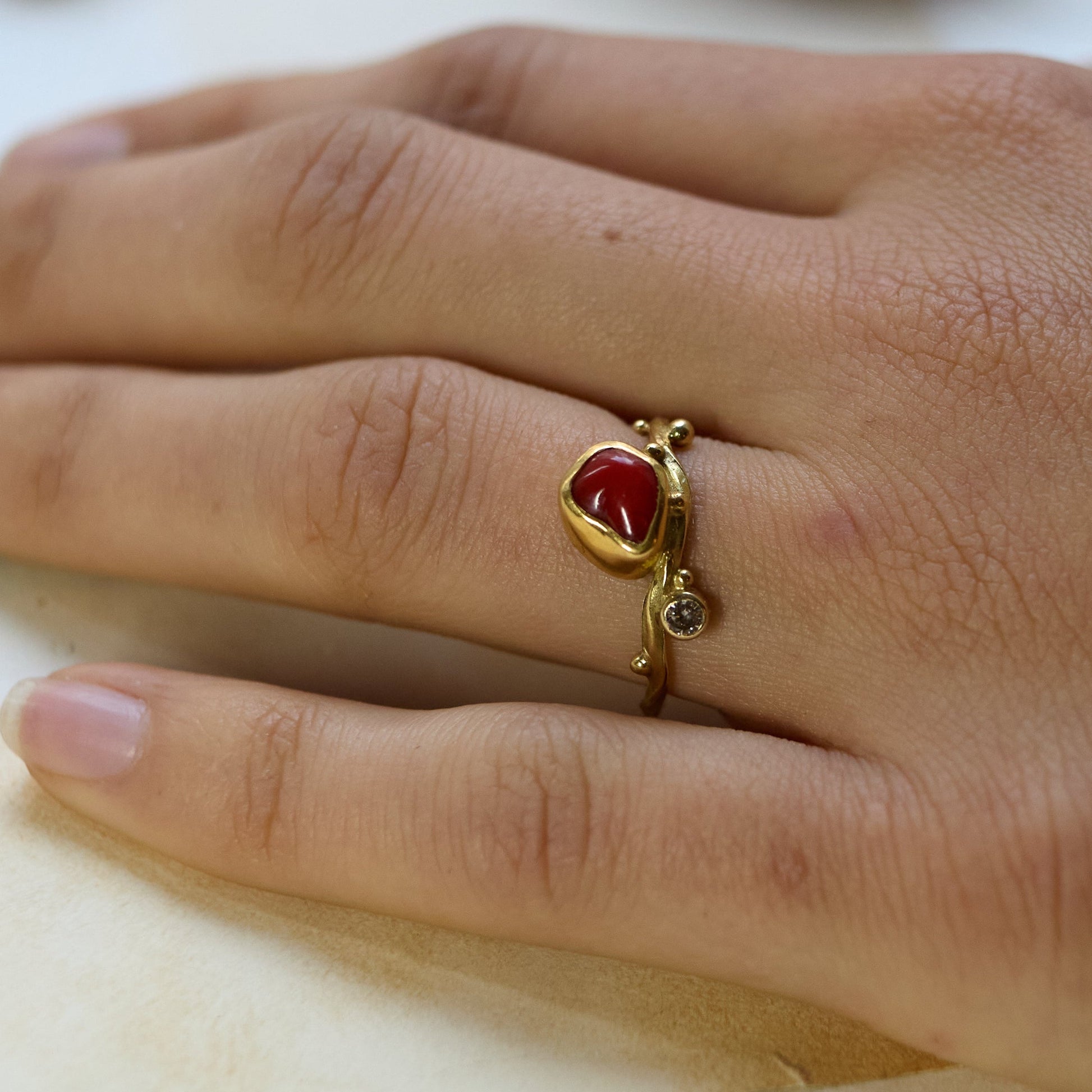 Ædelsten: Koral, 0,06 ct. champagne brillantslebet diamant