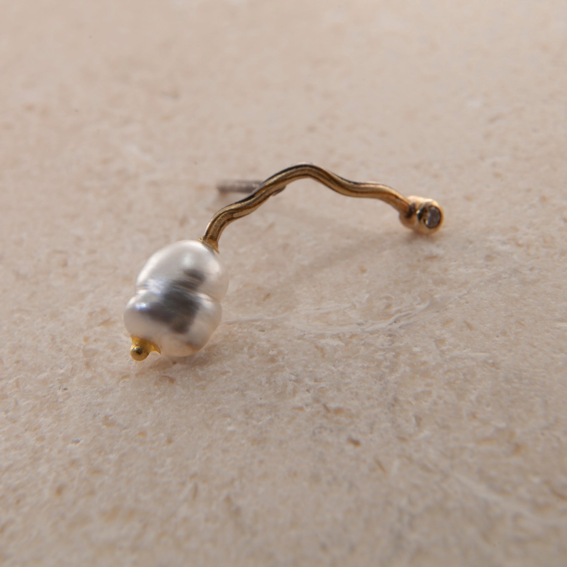 Ædelsten: Keshi-perle, 0,02 ct. champagnefarvet brillantslebet diamant