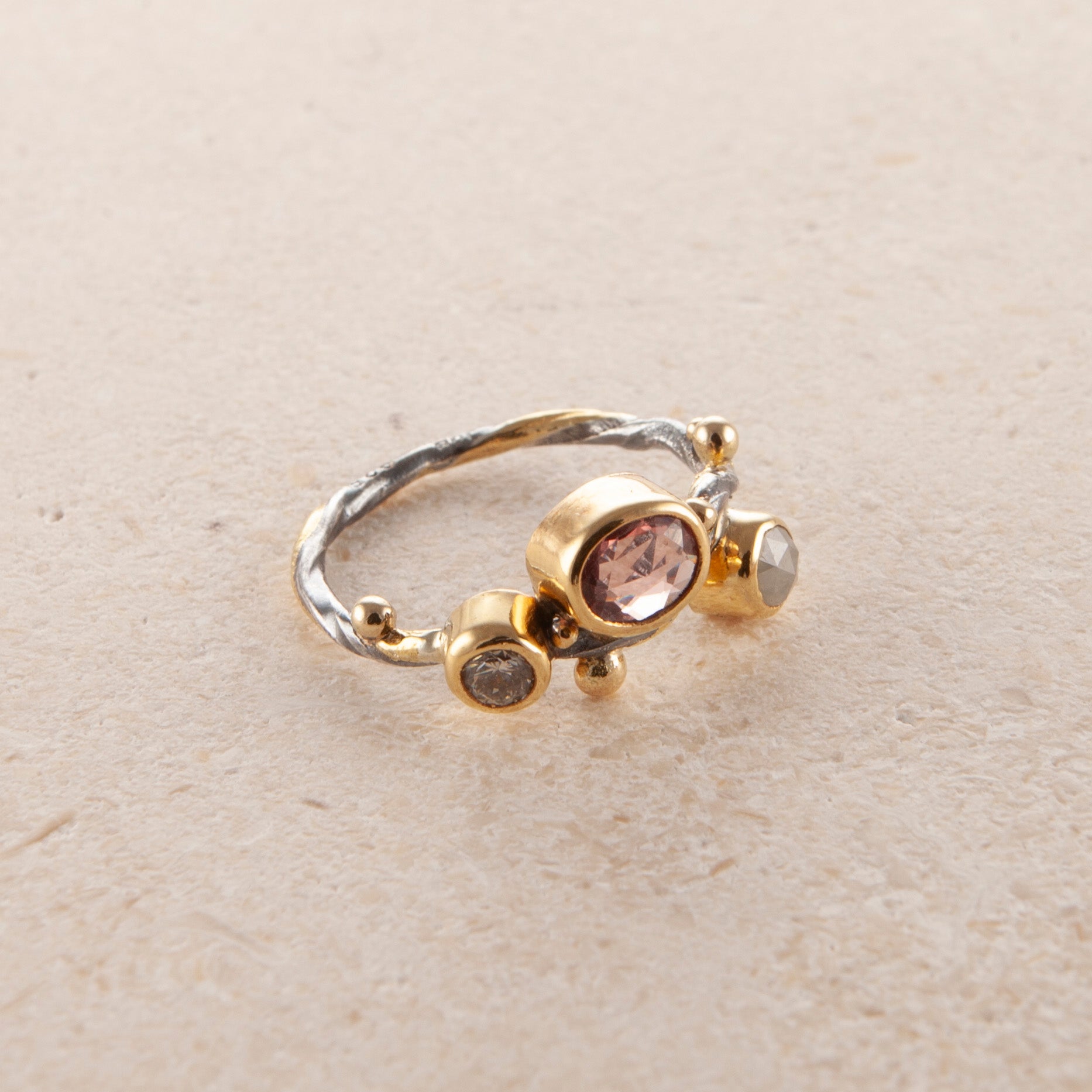 Ædelsten: Pink safir, 0.24 ct. rosecut safir, 0.15 ct. brilliantslebet diamant