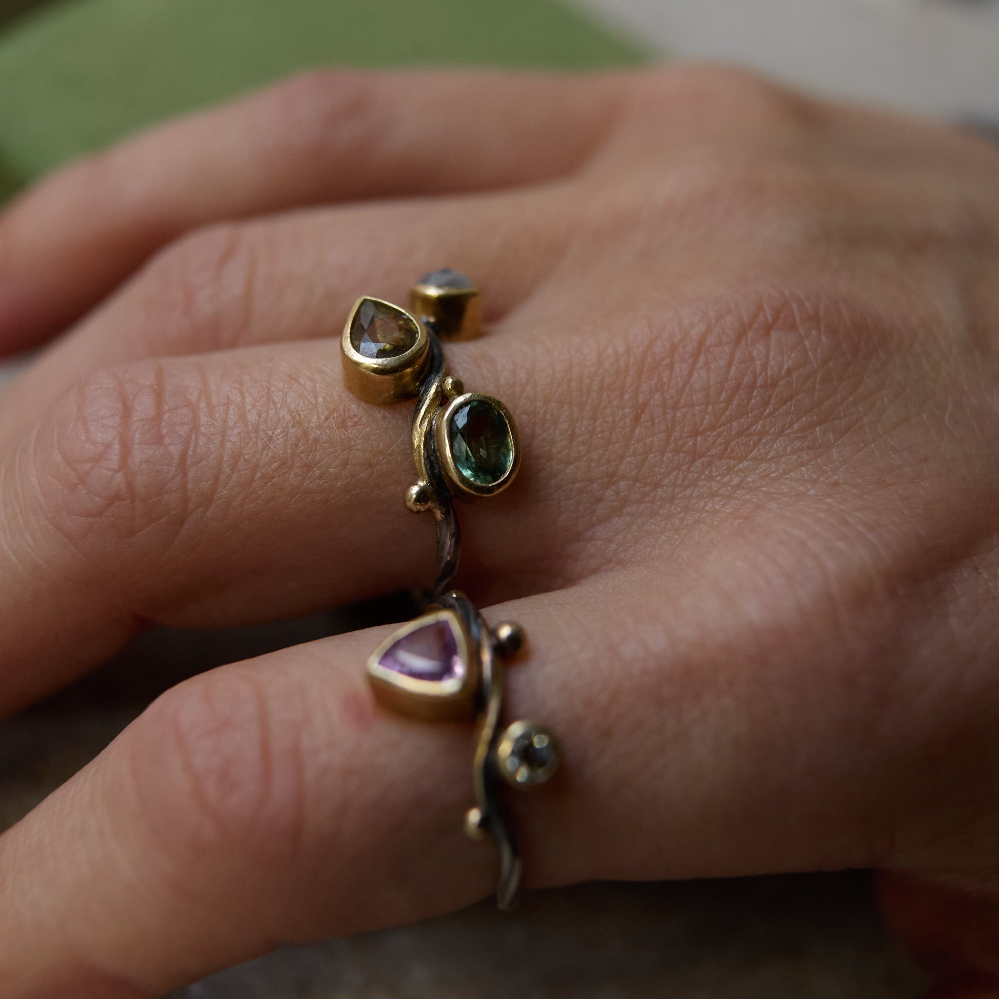 Ædelstene: Grøn safir, gul safir, 0.37 ct. rosenslebet diamant