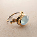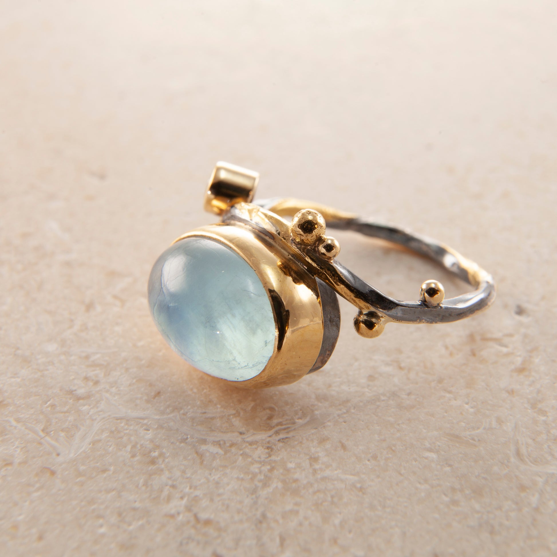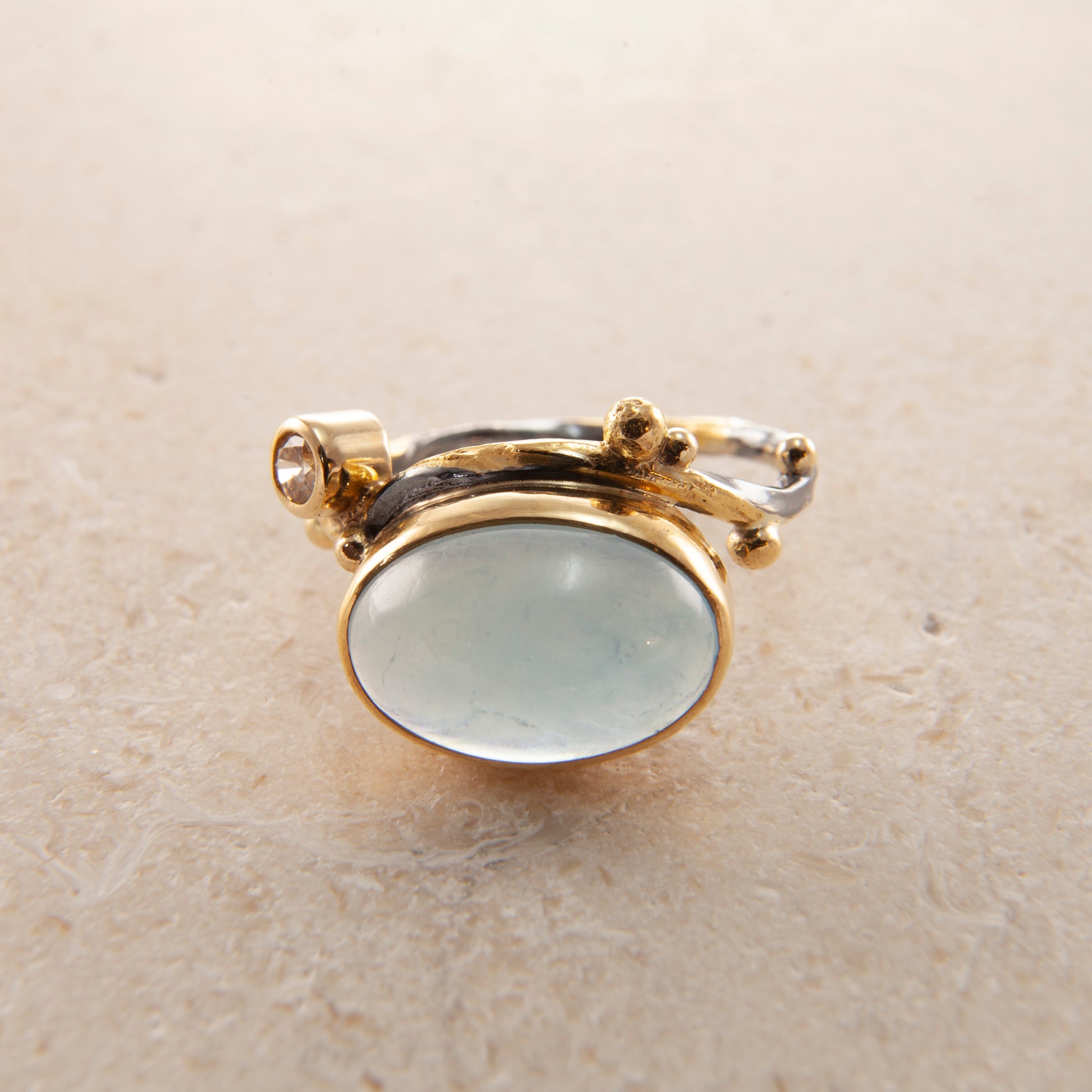 Ædelsten: Akvamarin, 0,10 ct. champagne brilliant cut Diamant.